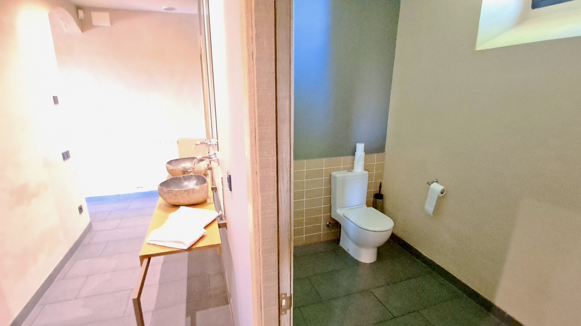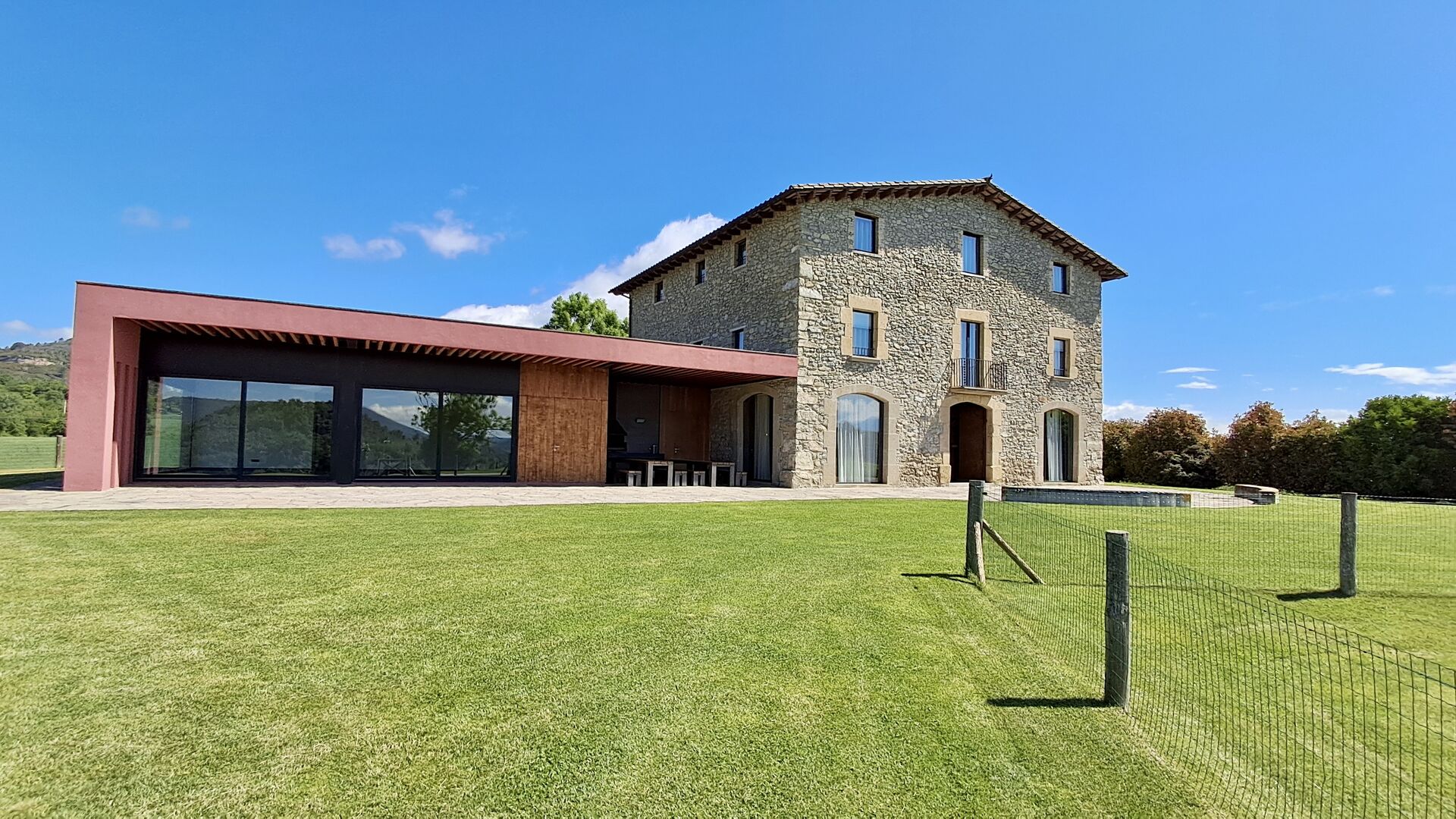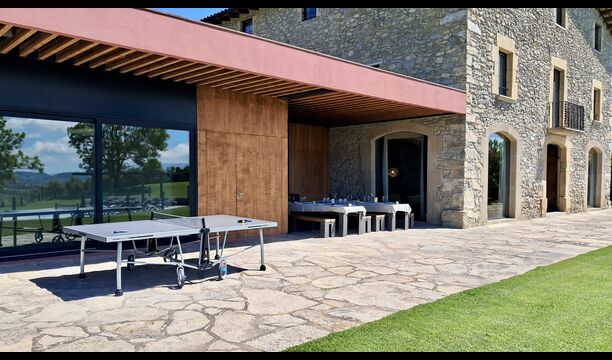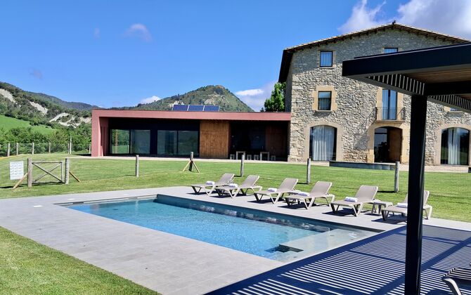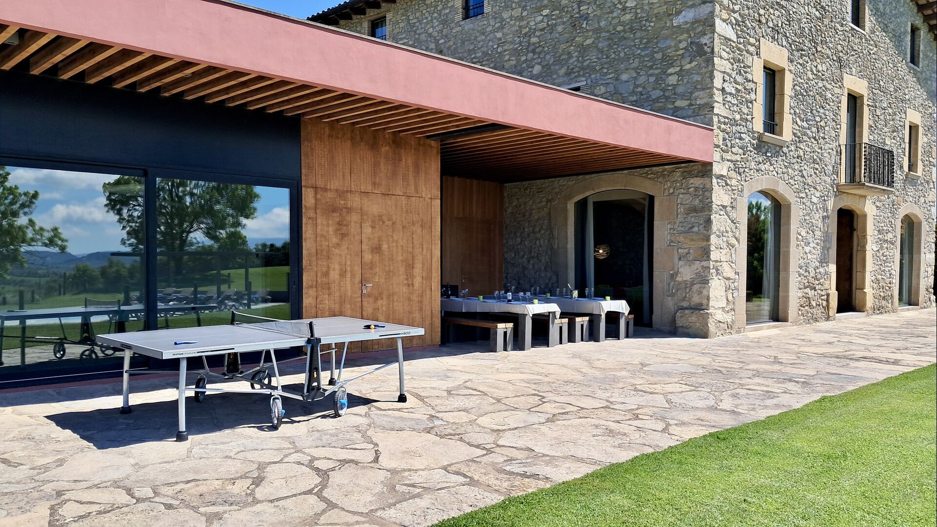 Casa Cané de Vic offre une maison de vacances unique de 650m2 pouvant accueillir 22 (+7) personnes. Il y a trois étages. Au rez-de-chaussée il y a une belle salle avec des fauteuils confortables. À cet étage, il y a aussi une cuisine gigantesque - rempli de tous les équipements modernes dont vous aurez besoin pour cuisiner un bon repas. En outre, il y a un accès au parking directement depuis la cuisine, de sorte que vous pouvez facilement vous remettre dans la cuisine. Vous trouverez également un salon confortable avec cheminée et toilettes. Enfin, il y a une salle de jeux avec baby-foot au rez-de-chaussée.