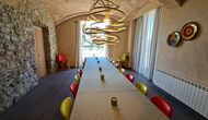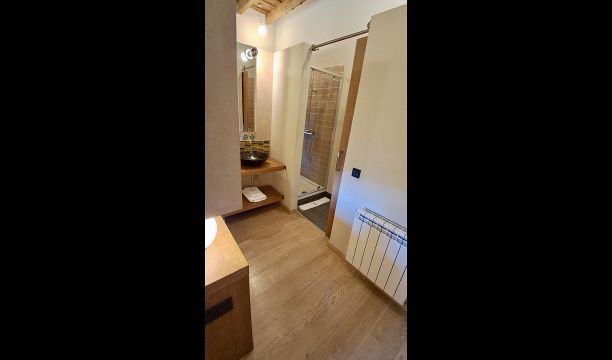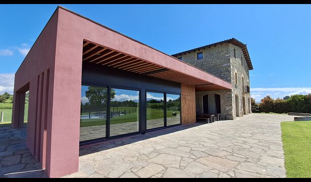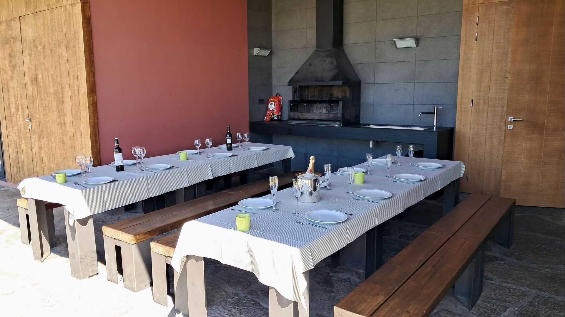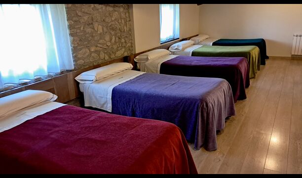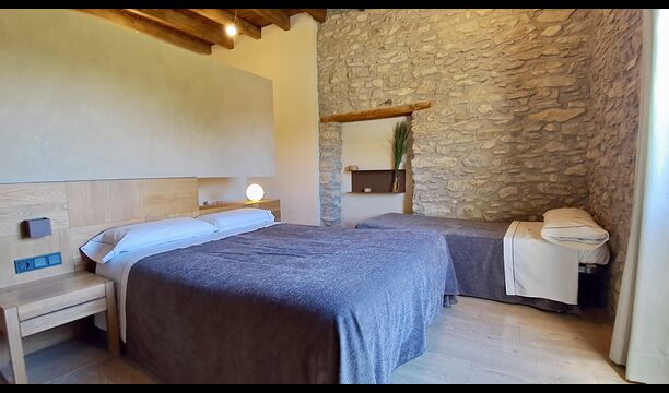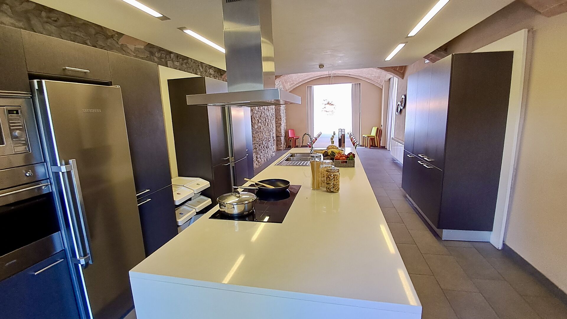 Casa Cané de Vic offre une maison de vacances unique de 650m2 pouvant accueillir 22 (+7) personnes. Il y a trois étages. Au rez-de-chaussée il y a une belle salle avec des fauteuils confortables. À cet étage, il y a aussi une cuisine gigantesque - rempli de tous les équipements modernes dont vous aurez besoin pour cuisiner un bon repas. En outre, il y a un accès au parking directement depuis la cuisine, de sorte que vous pouvez facilement vous remettre dans la cuisine. Vous trouverez également un salon confortable avec cheminée et toilettes. Enfin, il y a une salle de jeux avec baby-foot au rez-de-chaussée.