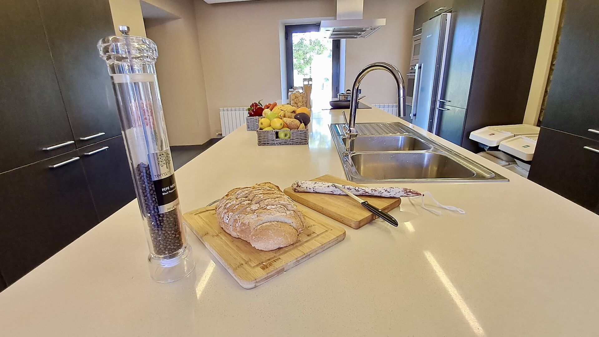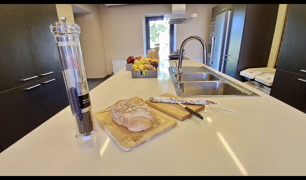 Le jardin de 2000 m2 est très soigné et dispose d'une piscine privée avec chaises longues. Il a également une terrasse couverte avec BQQ, évier et eau, où vous pourrez profiter des belles soirées chaudes. En plus de cela, il y a une vue fantastique depuis la terrasse. La cuisine, qui est située avec un accès facile à la terrasse, a tous les équipements modernes dont vous avez besoin - machine à expresso, four à micro-ondes, deux réfrigérateurs, four et belle longue table dans un style traditionnel. En bref, cette maison de vacances de luxe est parfaite pour le client, qui veut le meilleur confort.