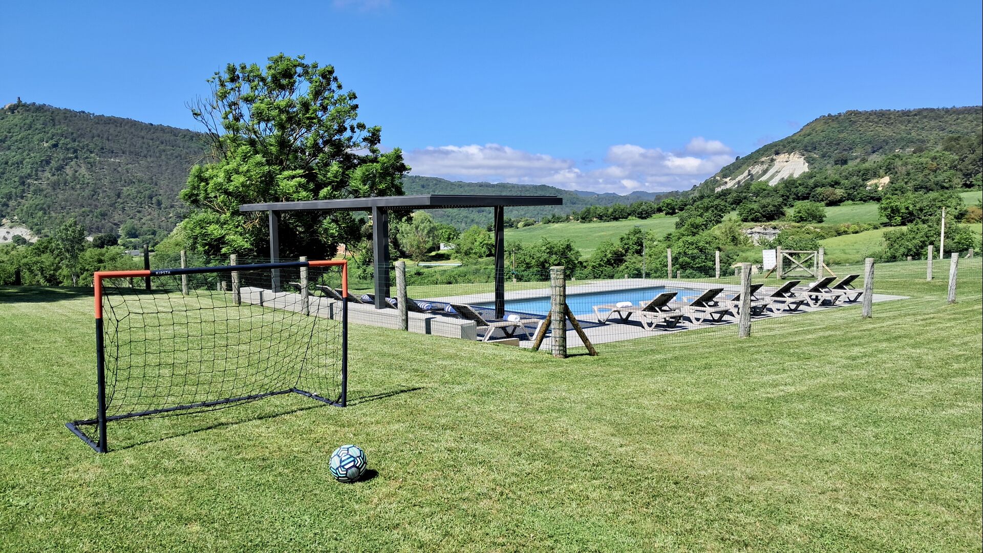 Le jardin est énorme - 2000m2. Il y a une piscine privée avec chaises longues, où vous pourrez vous détendre et vous amuser pendant les chaudes journées d'été. De plus, il y a une terrasse couverte avec barbecue et une cuisine extérieure, où vous pourrez profiter des chaudes soirées d'été. Il y a aussi une vue fantastique depuis la terrasse.