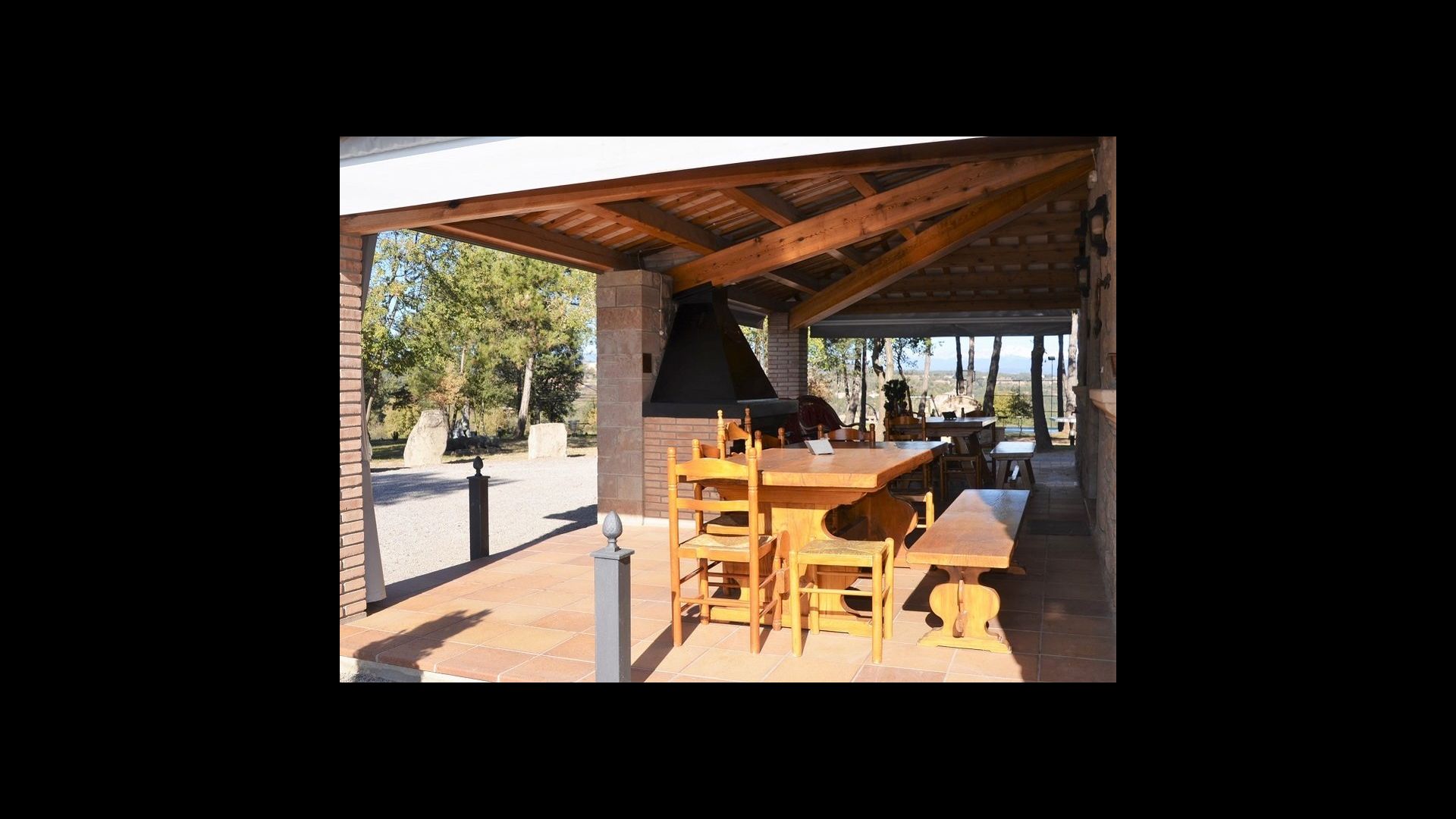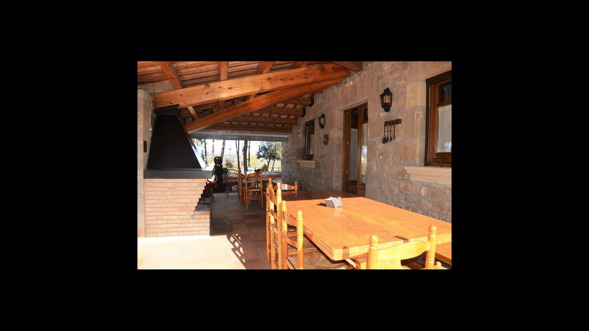 • grande terrasse couverte avec barbecue et table à manger