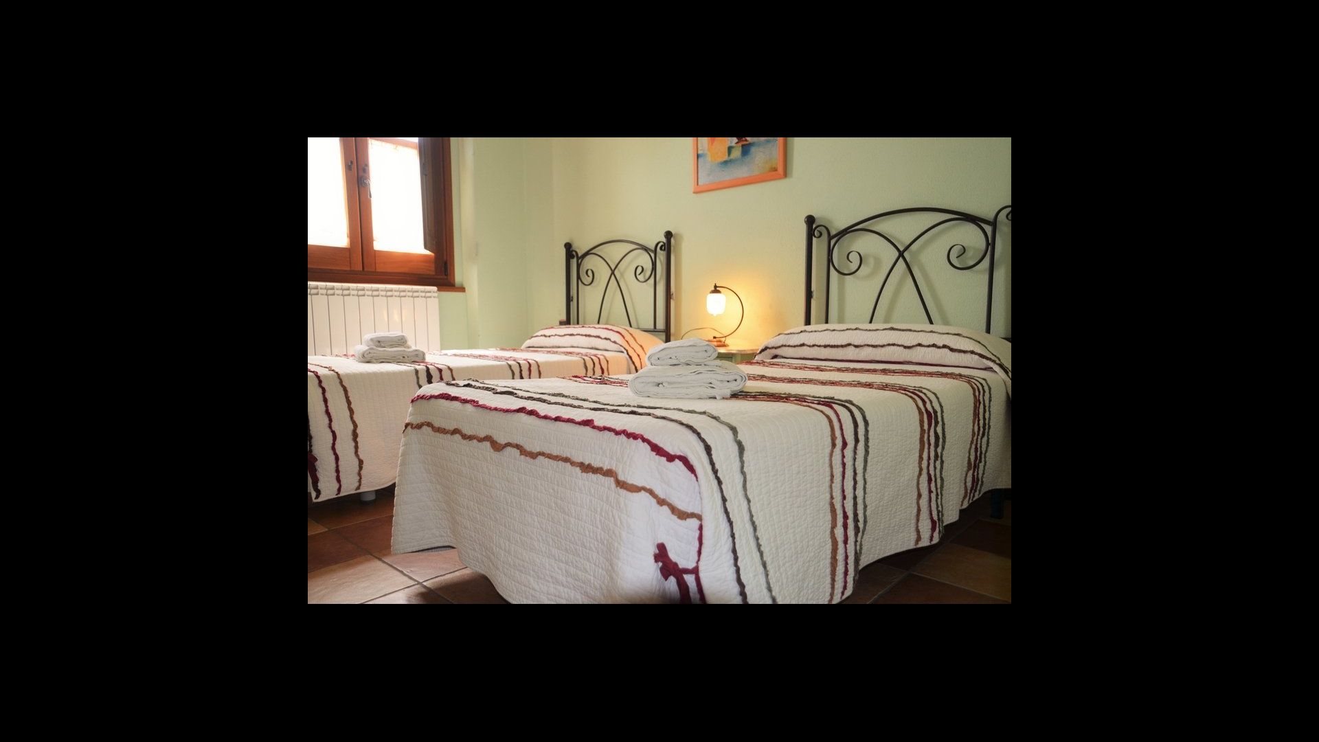 Presque toutes les chambres sont au premier étage. Il y a 10 chambres doubles au total, dont certaines avec balcon et vue magnifique. Huit des dix chambres ont des lits doubles, tandis que deux d'entre elles ont deux lits simples, que vous pouvez organiser à votre guise.