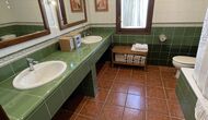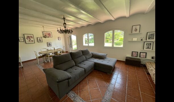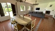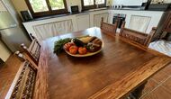 Il y a aussi un salon avec des canapés et un coin TV, ainsi qu'une plus grande salle à manger. Également au rez-de-chaussée, vous trouverez une chambre et la première des deux grandes salles de bain rustiques.