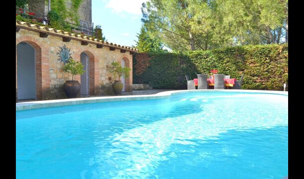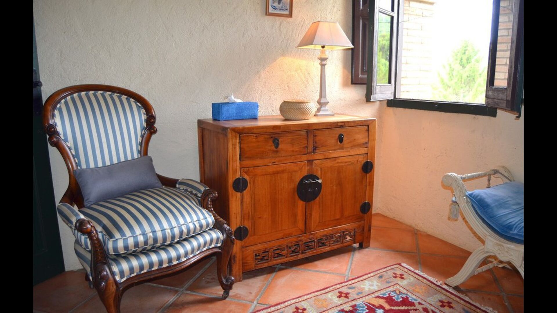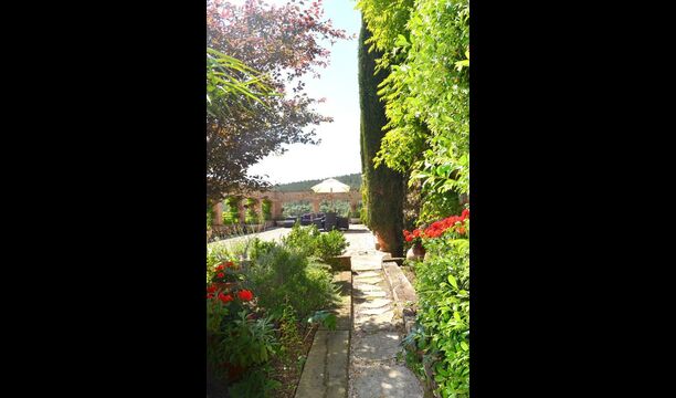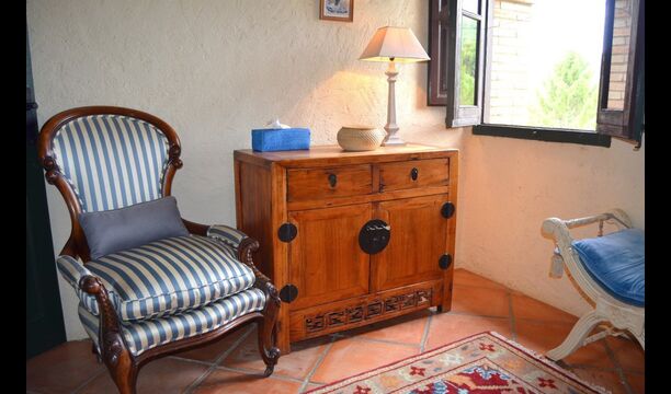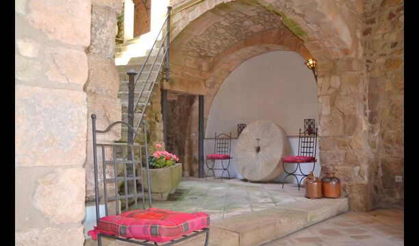 When arriving at the castle you are greeted by the scent of lavender, with sunlight reflecting off the ancient olive tree and the inviting terrace. The outdoor area has several seating areas and an impressive view towards the country side.