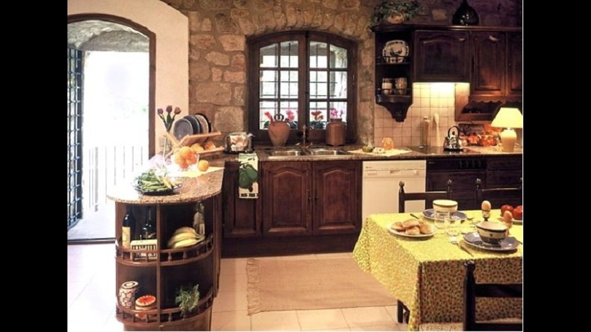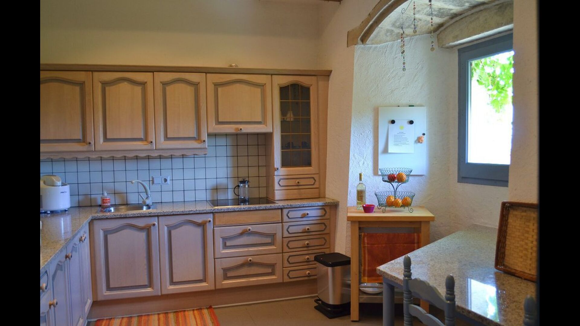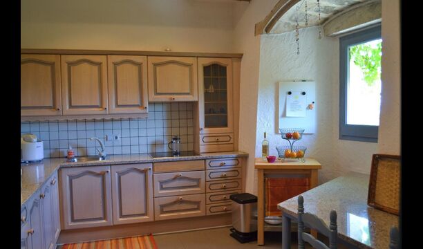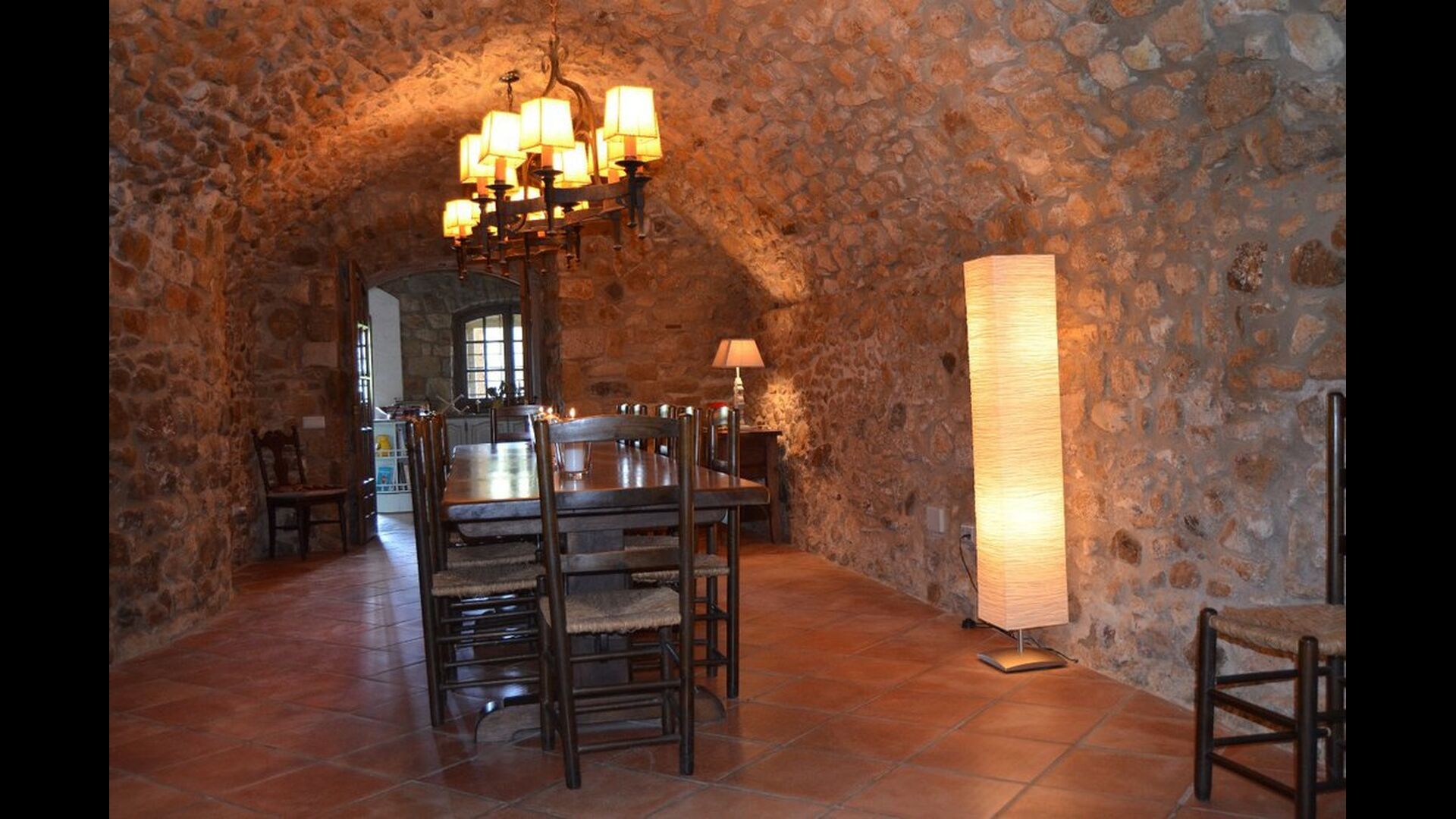 On the ground floor is the furnished courtyard, an ancient dining room, with a small wine cellar next to it and one of two kitchens (which leads directly to the terrace at the back side of the house). The kitchen contains all modern amenities. On the ground floor are also a laundry room and a toilet.