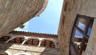 You enter Castell de Girona through the large beautiful gate from the main terrace. Here, you are greeted by a very spectacular furnished “courtyard”. The tower is in the very middle and you enter the castle by the stone stairs curving around the outside of the circular tower. This is where the energy of this ancient and historic home really touches the guests.
