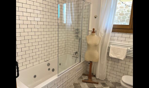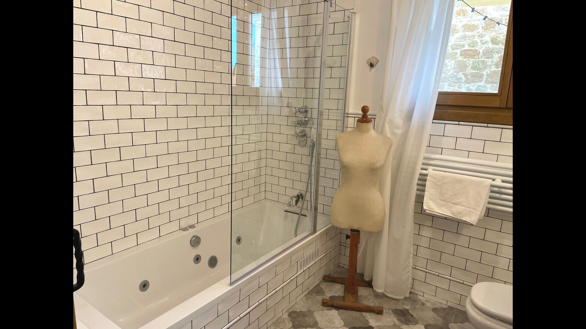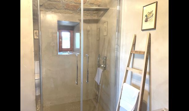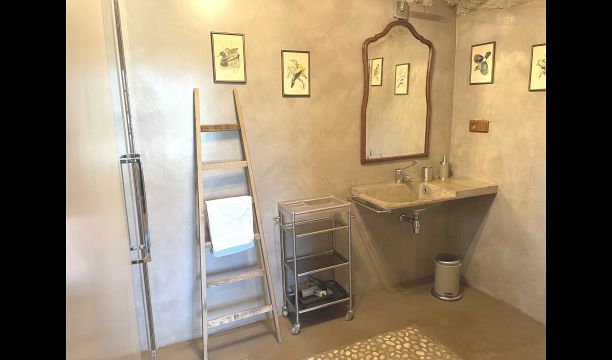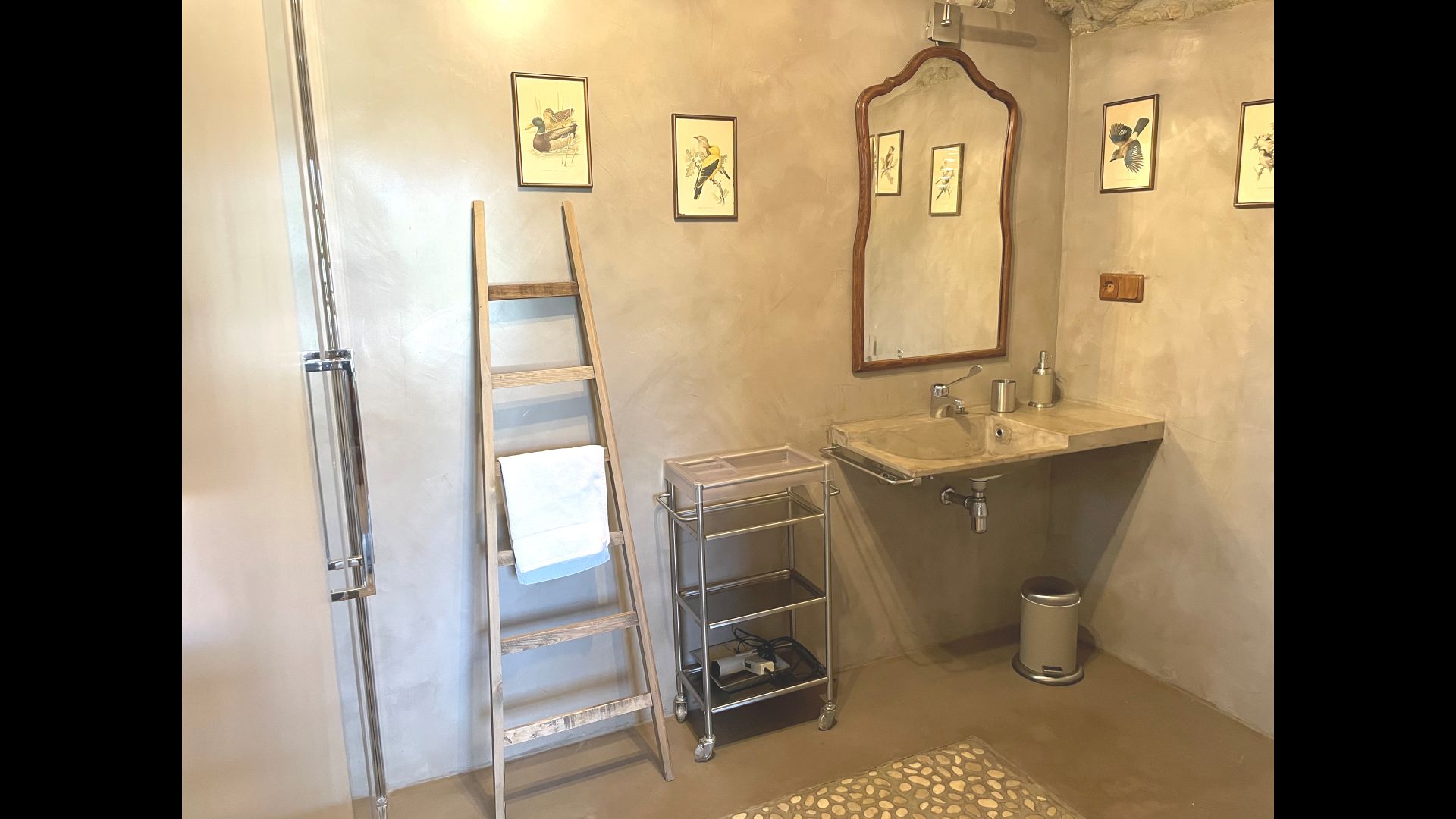 Au premier étage, une chambre confortable avec lit double et vue sur les deux côtés. Il y a aussi un bureau si vous avez besoin de vous retirer pour écrire quelques e-mails et enfin, une belle salle de bain avec douche est attenante.