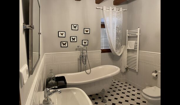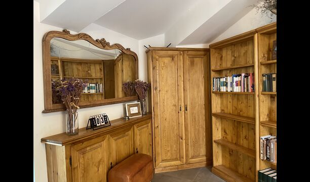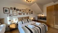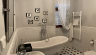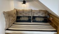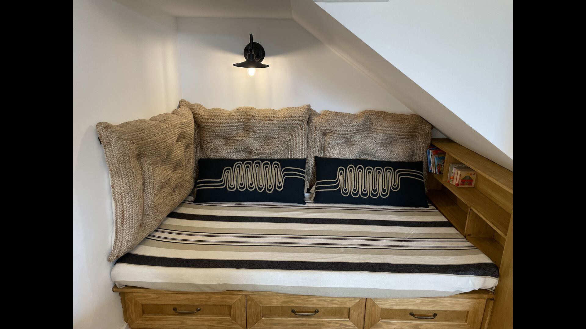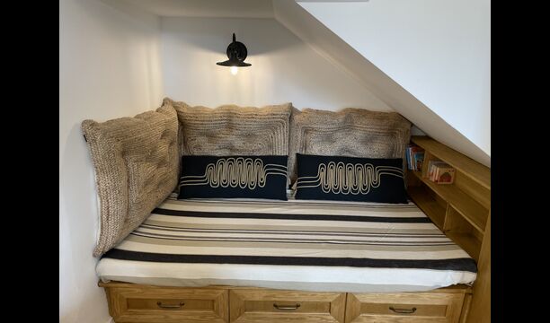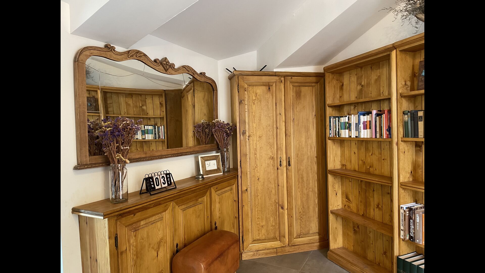 Toujours au rez-de-chaussée, vous trouvez la “salle secrète”. C'est une suite, dans laquelle vous entrez en glissant la bibliothèque, elle sort tout droit d'une histoire de crime d'un manoir anglais . La chambre elle-même est parfaite pour une famille, car il y a un grand lit double puis une alcôve avec un confortable canapé intégré, agréable pour un ou deux petits enfants ou pour se détendre. Ensuite une belle salle de bain avec douche pluie.