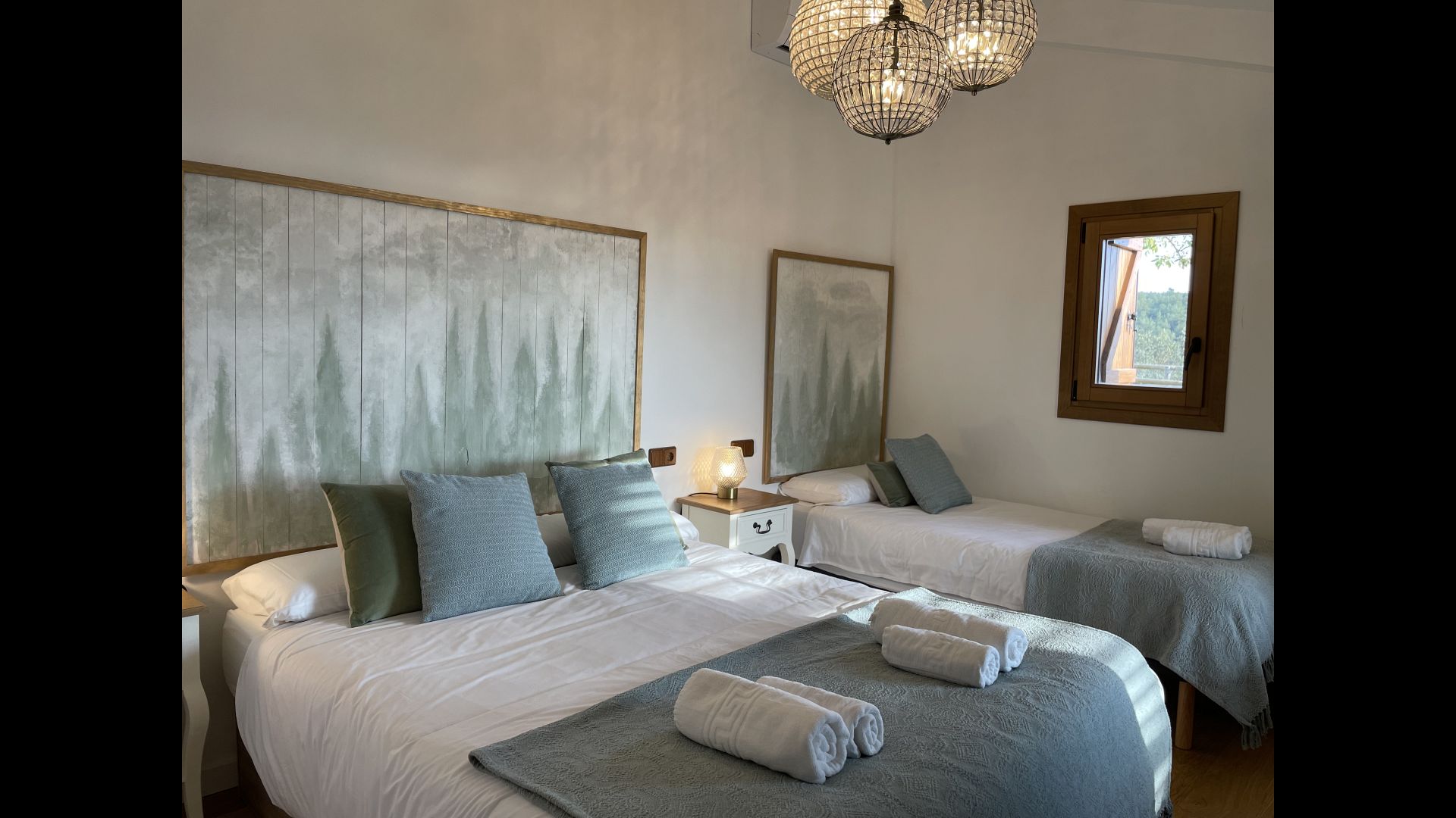 Le 2ème étage est décoré de plusieurs belles chambres différentes avec salles de bains attenantes. Le propriétaire de la maison est designer en chef pour l'une des principales marques de mode espagnoles et il a l'œil pour les décorations et la lumière, qui se reflètent dans toute la maison. Au 2ème étage il y a 3 chambres. 2 d'entre elles sont des chambres pour 3 personnes et 1 d'entre elles est une chambre double avec un lit double et la possibilité d'un lit simple supplémentaire. L'une des 3 salles de bain à l'étage possède une baignoire exclusive aux pieds griffes d'argent.