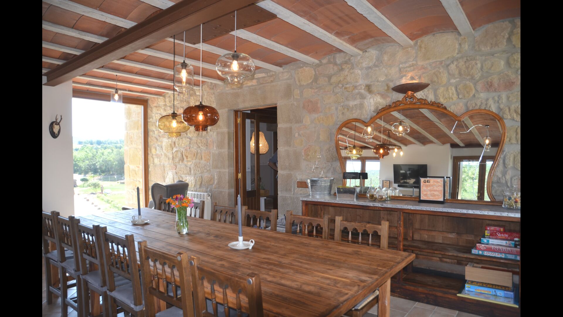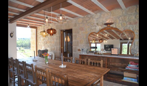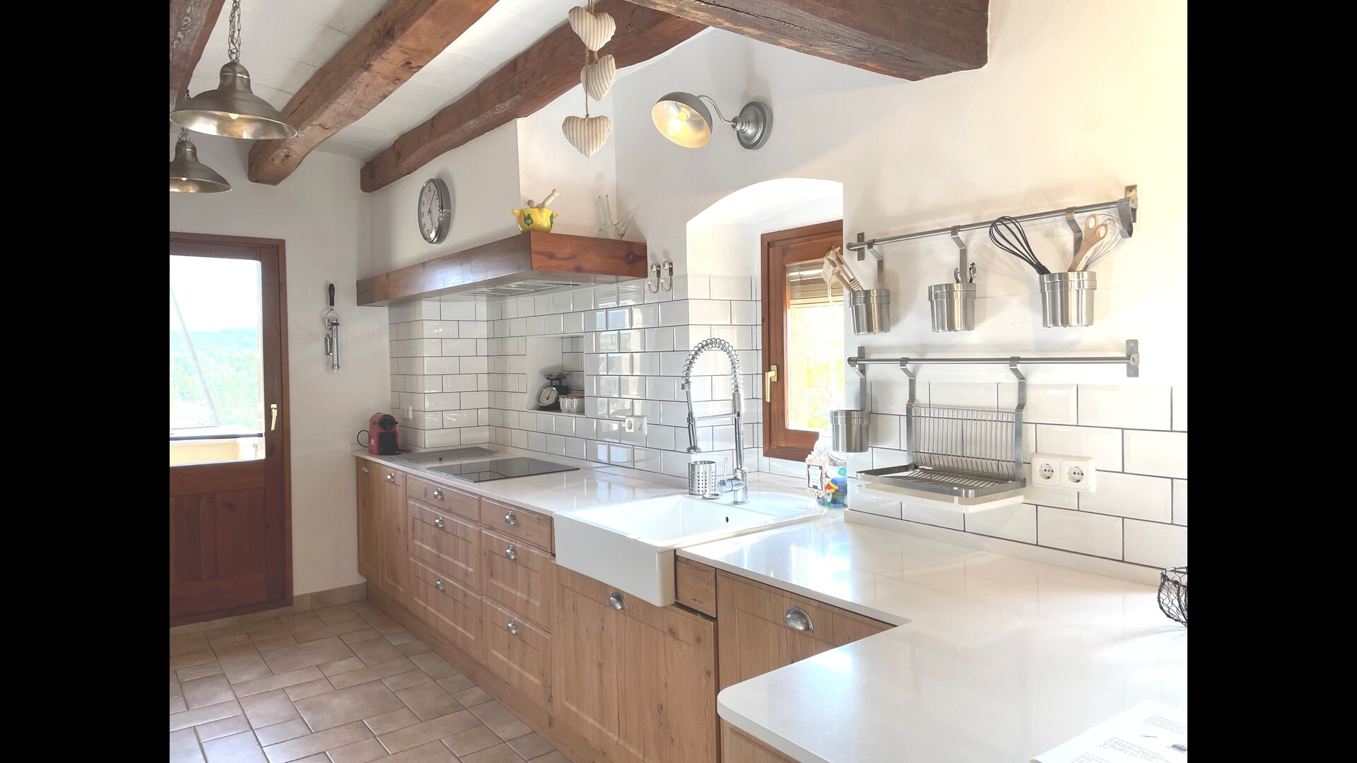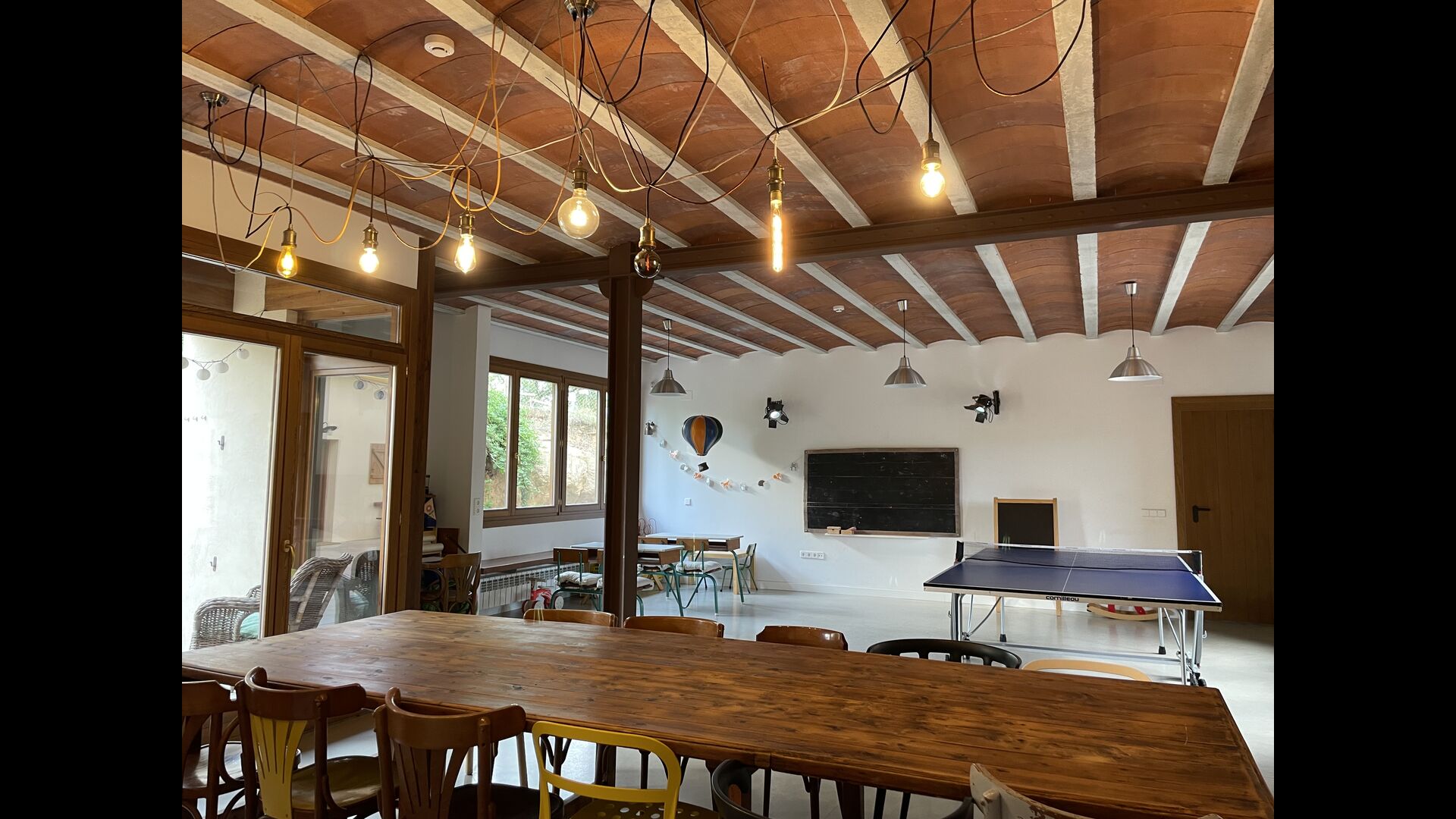 De la terrasse, vous pourrez profiter de la vue impressionnante sur les vertes collines catalanes. Les repas en plein air peuvent être appréciés à la longue table à manger sur la grande terrasse. Les repas faits maison ne peuvent qu'être recommandés, car la cuisine intérieure moderne et blanche est également complétée par une luxueuse cuisine extérieure couverte. El Oreña est en outre extrêmement familial. Dans la maison de vacances, il y a une petite aire de jeux avec un toboggan et des balançoires et vous pouvez garder un œil sur les enfants lorsqu'ils nagent et jouent dans la piscine clôturée espace piscine.