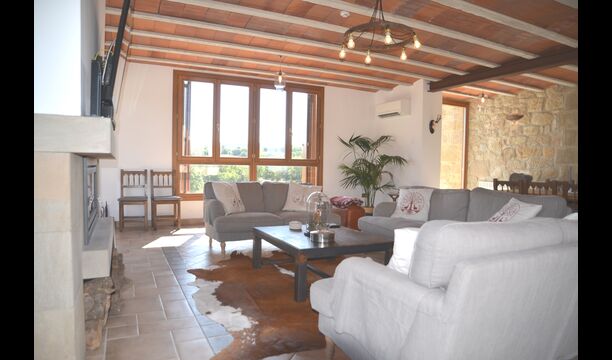 El Oreña a une belle grande pièce, avec de grandes fenêtres qui rendent la pièce lumineuse et spacieuse, et ici les repas à l'intérieur peuvent être appréciés à la table à manger. Dans le salon lumineux, qui peut être rafraîchi par la climatisation, un coin canapé confortable est aménagé où vous pourrez vous détendre et par exemple jouer à des jeux le soir. Le salon a une sortie vers une grande terrasse, qui comprend entre autres une longue table à manger, un lit balançoire et des vues incroyables.