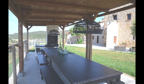 Le centre naturel de vos vacances est l'espace combiné terrasse et piscine, situé pour profiter de la vue splendide. Ici, vous trouverez la piscine clôturée avec des escaliers romains, une section basse pour les enfants et la grande et unique , zone de détente couverte. La zone de détente couverte contient à la fois une longue table à manger et une cuisine extérieure moderne.