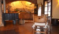 Comme il s'agit d'un moulin à eau, l'eau passe sous le bâtiment, et dans la partie la plus basse, la machinerie est toujours là. Ici, il y a aussi des toilettes et une petite cuisine, un barbecue et une longue table ont été installés, comme alternative à manger dehors ou dans la salle à manger.
