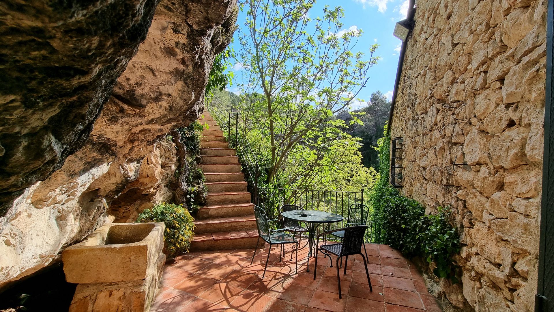 Les propriétaires Pilar et Jordi ont fait un travail fantastique, en réformant soigneusement le moulin à eau et en le meubleant avec des meubles de bon goût, en préservant son authenticité. Le bâtiment a plusieurs étages et est construit directement sur le flanc d'un rocher, qui sert en fait de mur de la maison.