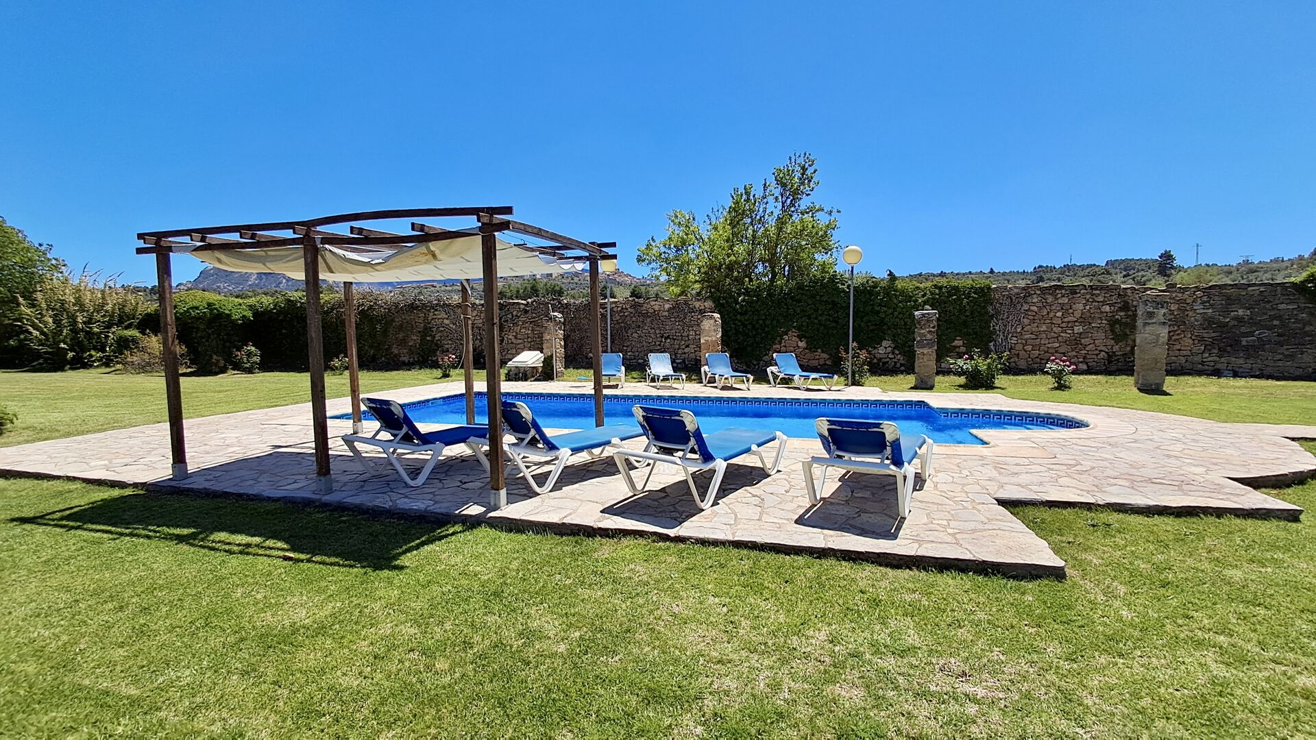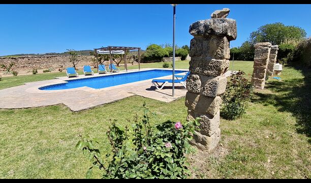 Mas de Rei Pedro is an authentic Catalan holiday home for 11 + 2 persons - very suitable for large or multiple families and groups. The house has a lovely garden with 50 m2 large swimming pool and an outdoor barbecue and a roofed pool table. The house possesses additionally 5 bedrooms and a terrace on the first floor. From the terrace you will have a wonderful view of the garden and the cosy town Horta de Sant Joan, which is within walking distance from Mas de Rei Pedro. Pablo Picasso lived in the little town and, among other things, he painted his first cubist painting here (a very good and unique Picasso museum is also located in the town).