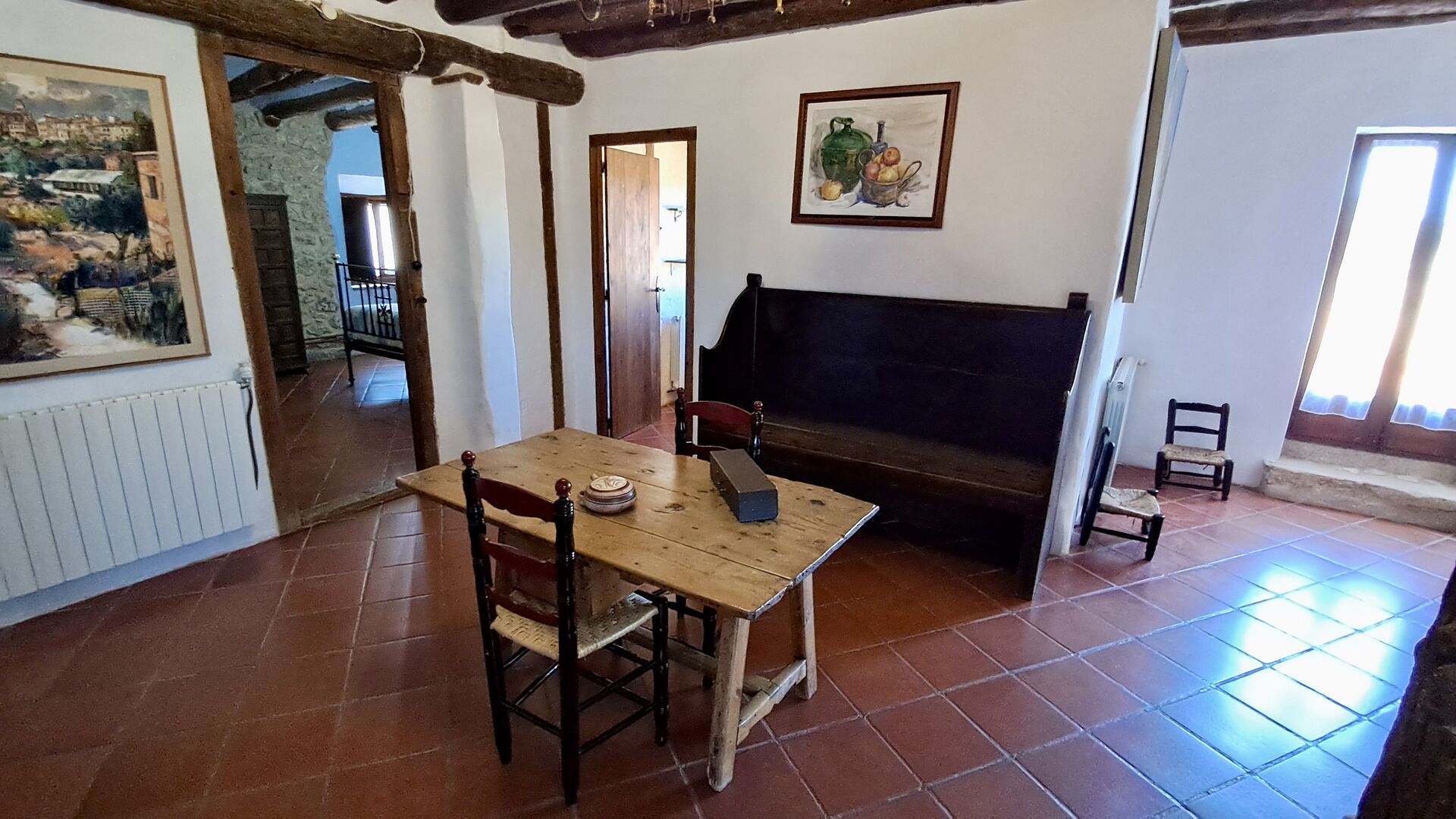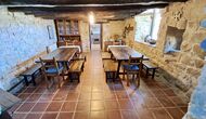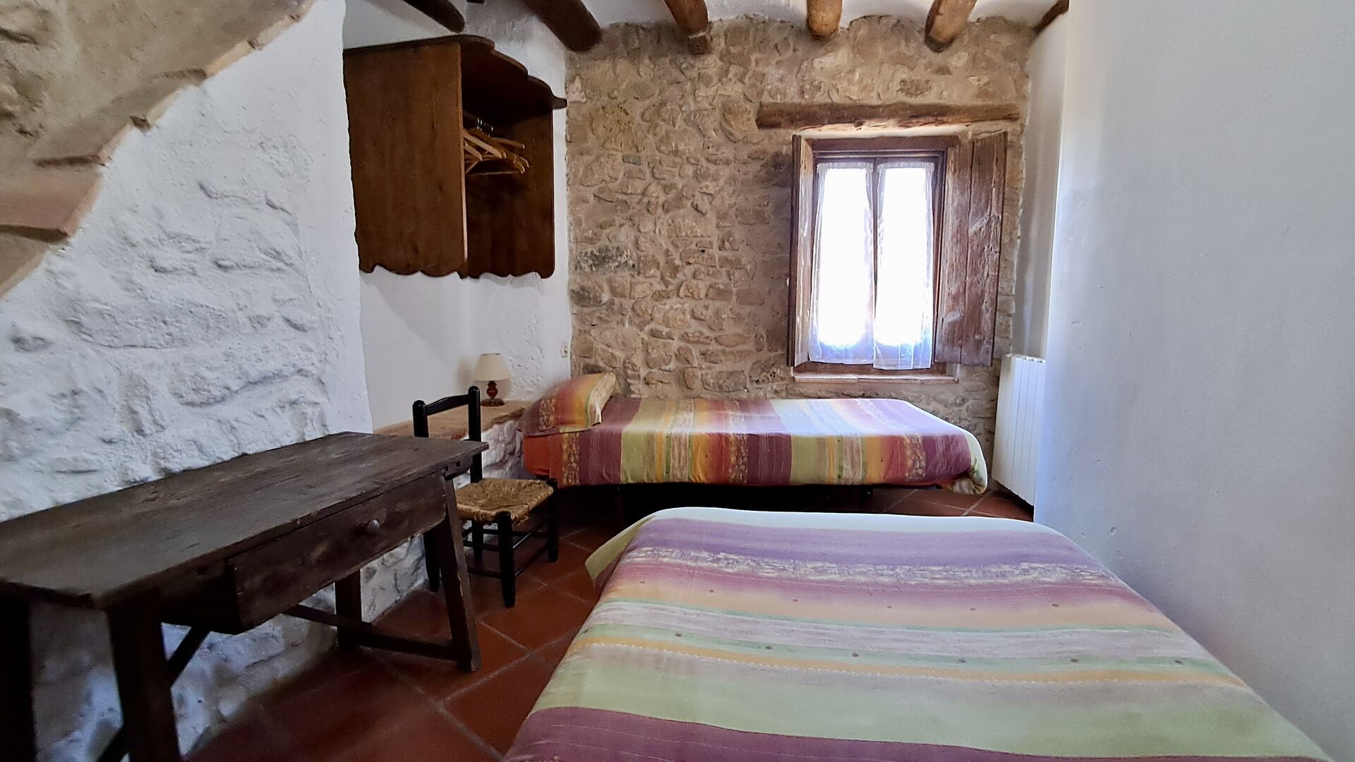 The ground floor furthermore offers a living room with sofas, flat screens, DVD machine, Wi-Fi and a characteristic old fireplace. In the Hall you find an exchange-book area and delicious local wines and olives, which you can buy at fair prices. A model of the famous monastery Convent de SantSalvador is also placed in the hall (the monastery is located in the nearby town ofHorta de Sant Joan). On the wall in the hallway hang old, antique agricultural tools that emphasize the traditional Catalan farmer style of the building.