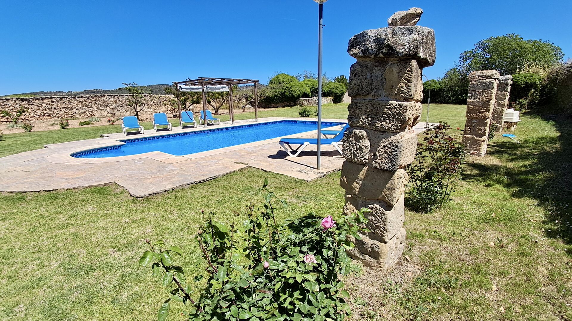 On your arrival at Mas de Rei Pedro you firstly notice the beautiful outdoor facilities. First and foremost, the large private pool (50 m2) with a surrounding pool area where you can enjoy the warm days - either with a good book in the many sun beds or by playing and swimming in the cooling water. The town is located on a hilltop, and from the garden you can enjoy the view of the charming rooftops.