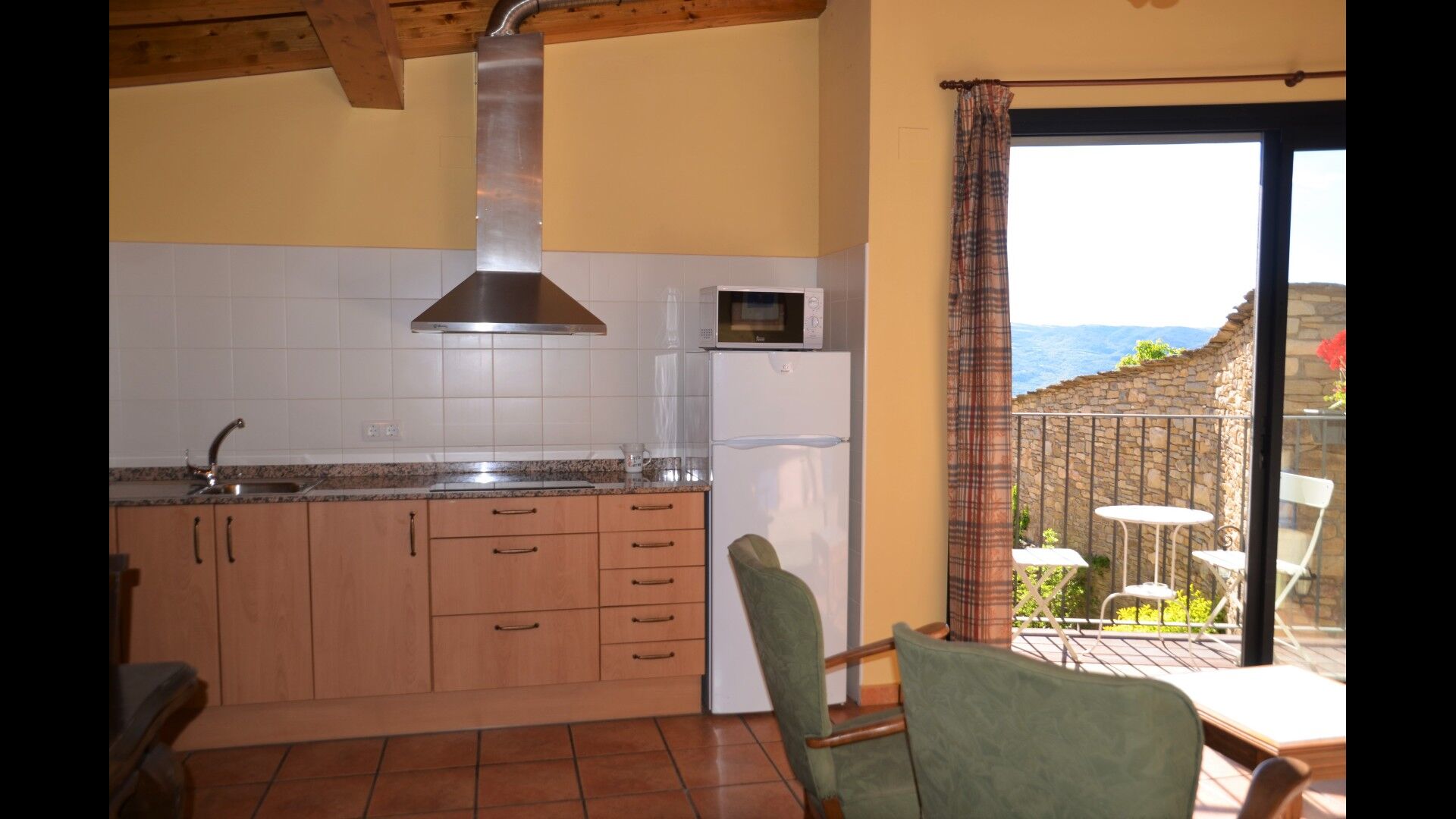 Can Soledad – Forn 4+2P is one of the three smaller apartments. The apartment has two bedrooms - one with a double bed and one with twin beds. The apartments also have a living room with French balcony from where you can enjoy the fantastic view. Furthermore, the living room is equipped with TV and DVD player. The well-equipped kitchen is connected to the cozy living room. There’s also a bathroom with shower. The Wi-Fi covers the entire property and all apartments.