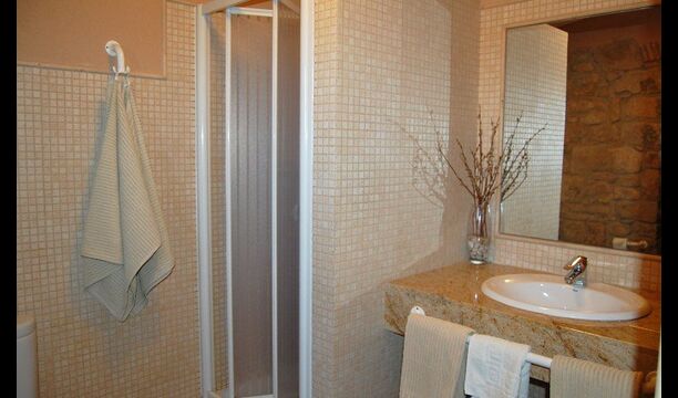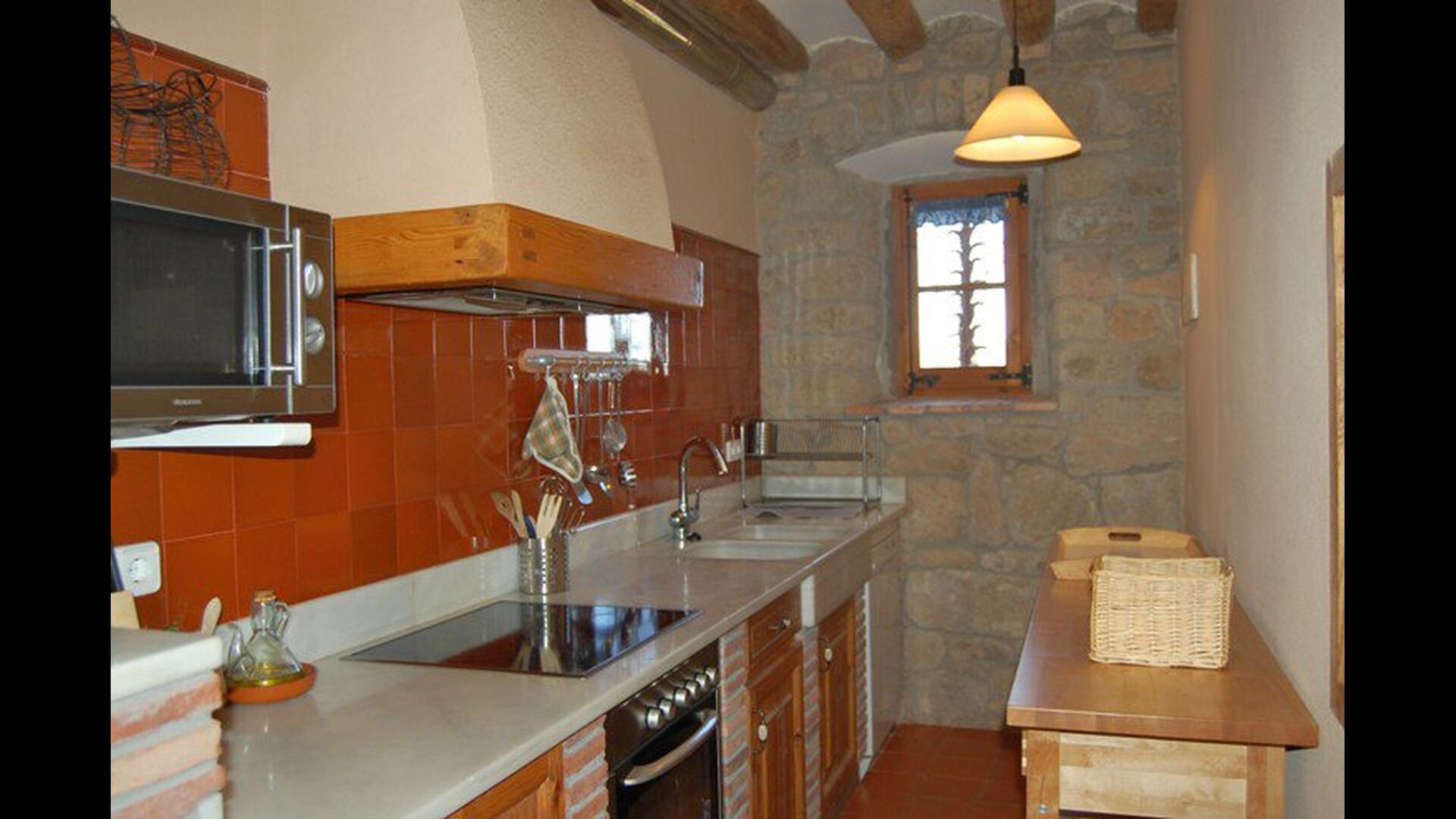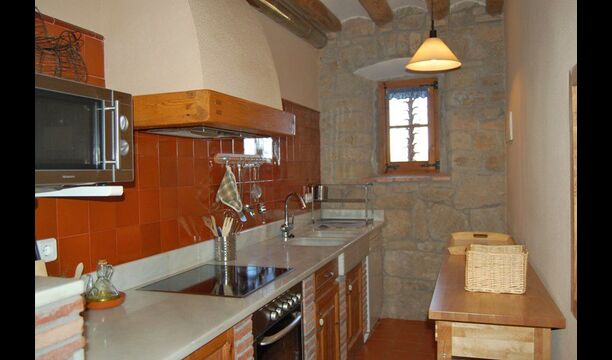 Les installations intérieures sont magnifiques comme l'extérieur. L'entrée de la maison, qui est au premier étage, se compose d'un grand escalier principal. La première chose que nous trouvons est la porte d'entrée de la cuisine qui a tous les outils nécessaires: micro-ondes, lave-vaisselle, four et bien plus encore. Il est joliment décoré et a conservé une petite fenêtre authentique de la cuisine au salon. Cette chambre dispose d'une cheminée et d'une télévision. Il y a aussi une table à manger et un canapé moelleux. En outre, au rez-de-chaussée il y a une entrée sur une belle terrasse avec des meubles. Profitez des vues spectaculaires à couper le souffle