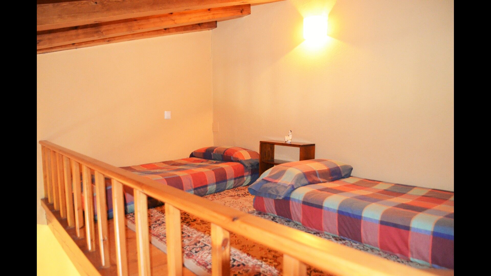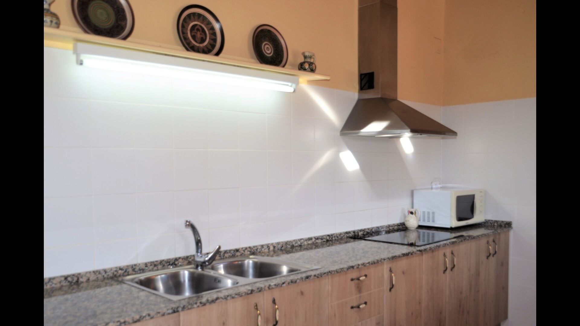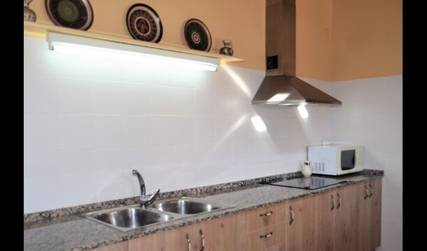 Can Soledad – Mestre 6+2P is the largest apartment on the property with 85 m2. In this apartment, there’s a double bedroom with twin beds and a four people bedroom with a double bed and twin beds. The twin beds in the big room are located in a cozy loft, which is optimal for children to sleep in. There’s also a spacious bathroom. The living room has a comfortable couch and a TV with DVD player. Furthermore, there’s a dining table and a French balcony from where you can enjoy the scenic view. The kitchen is located just behind the couch. The Wi-Fi internet covers the entire apartment.