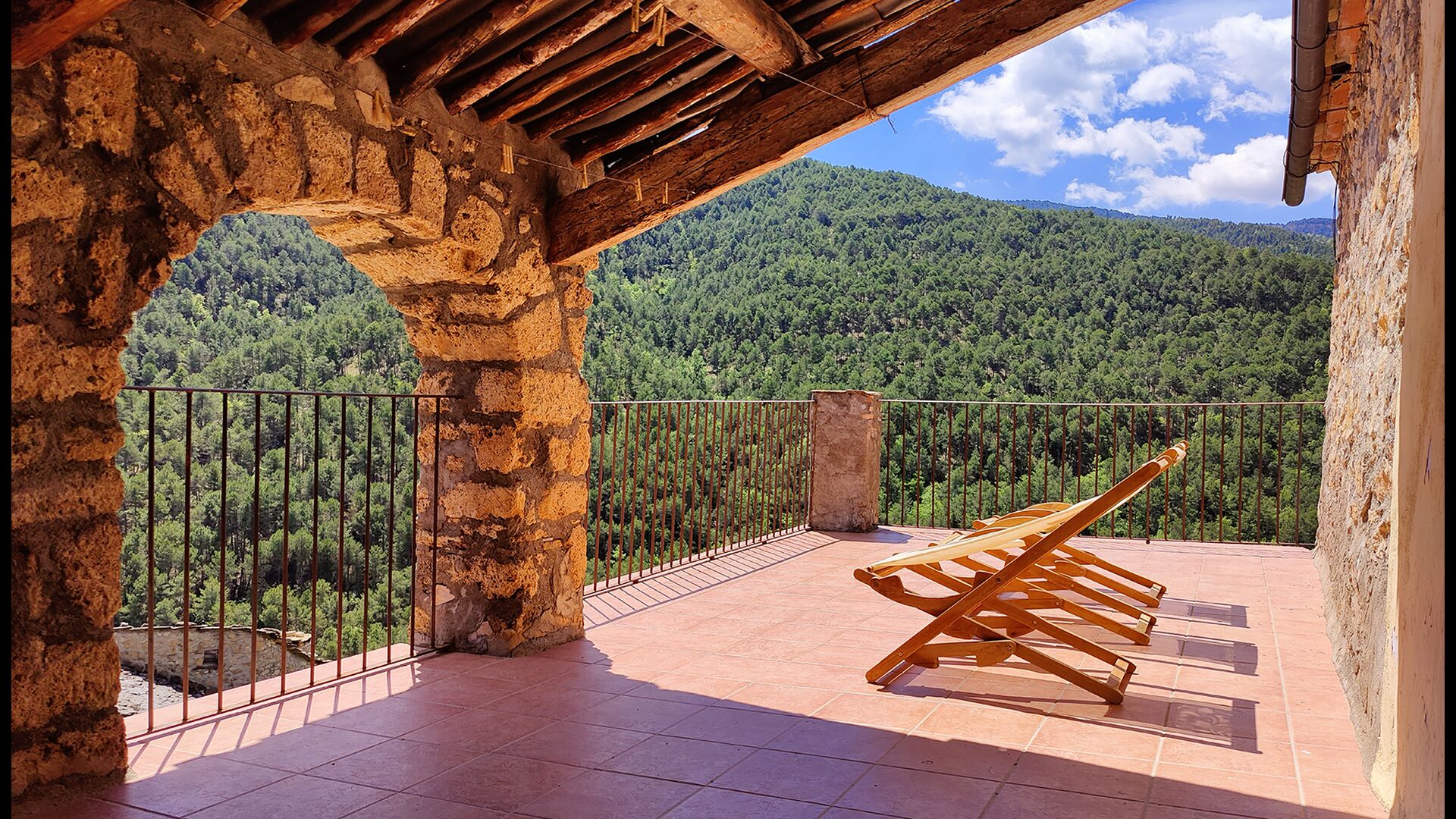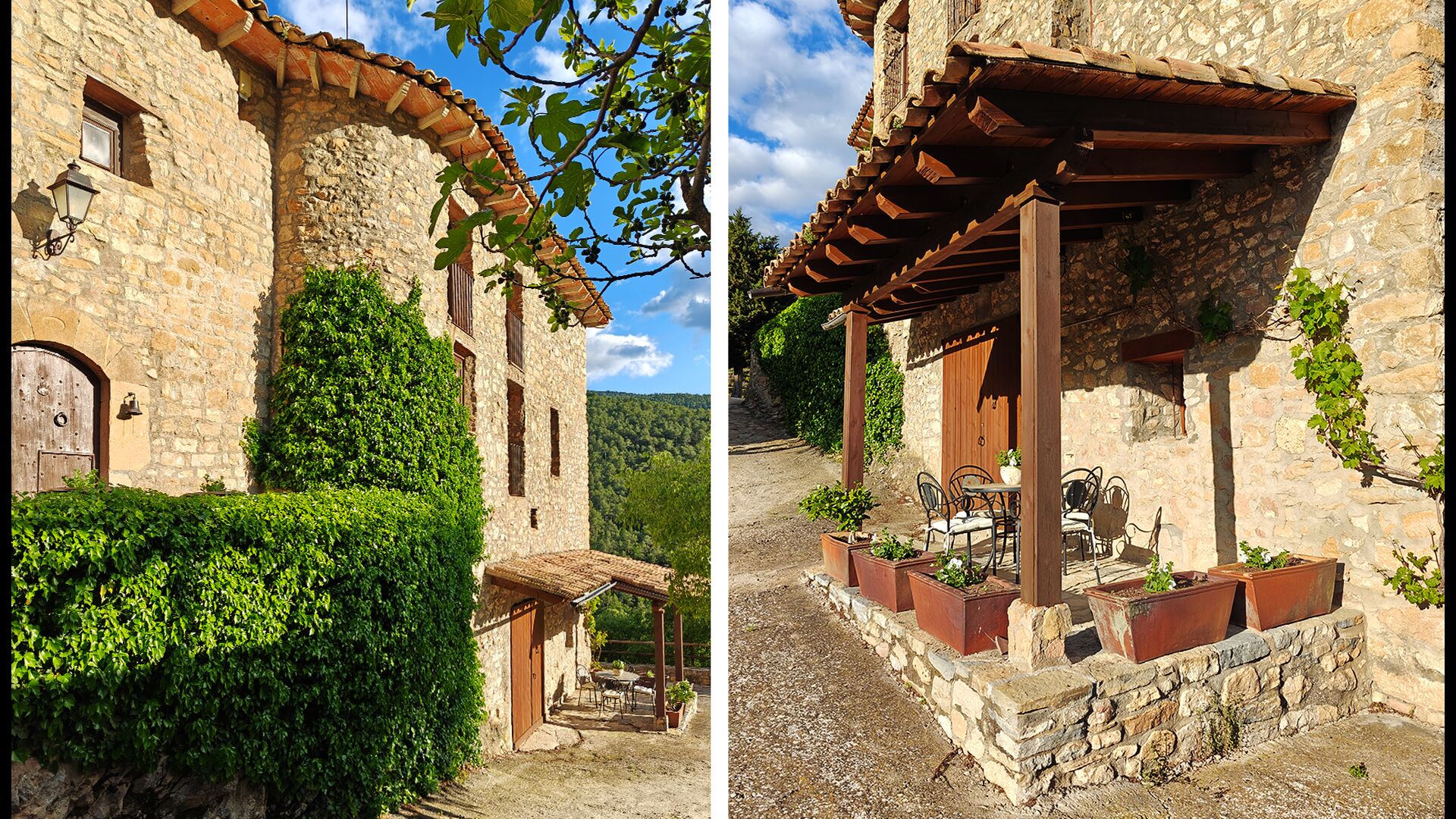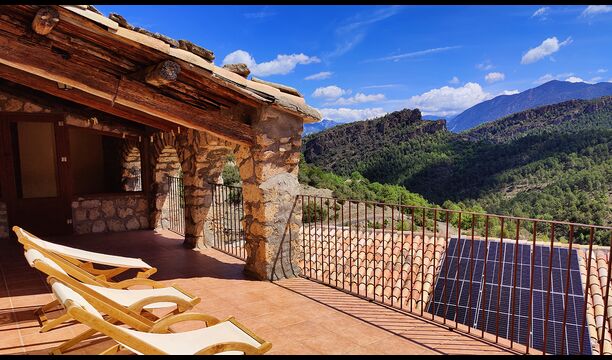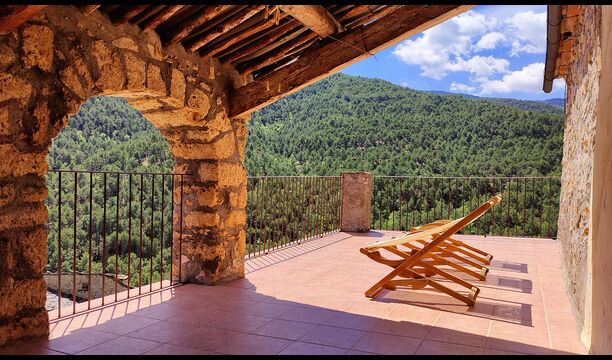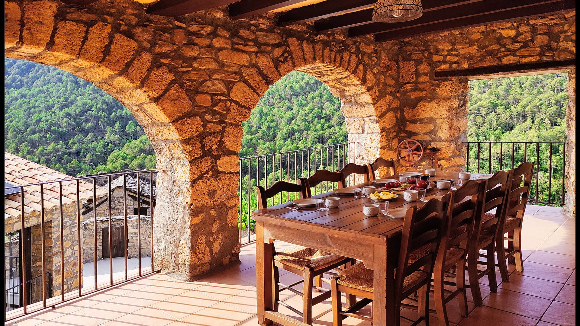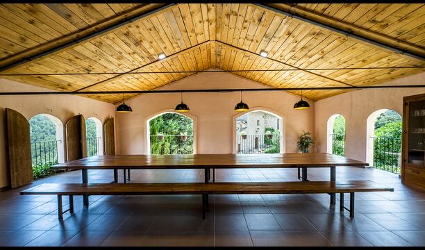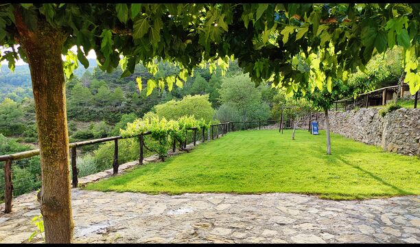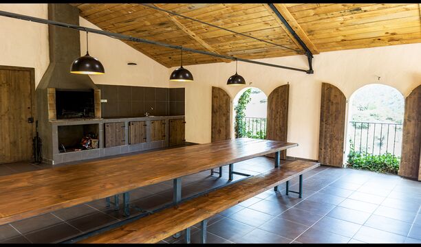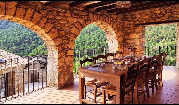 La terrasse couverte est l’un des endroits les plus charmants de la maison, parfaite pour le petit-déjeuner ou pour se détendre en écoutant le ruisseau voisin de Valldarques.