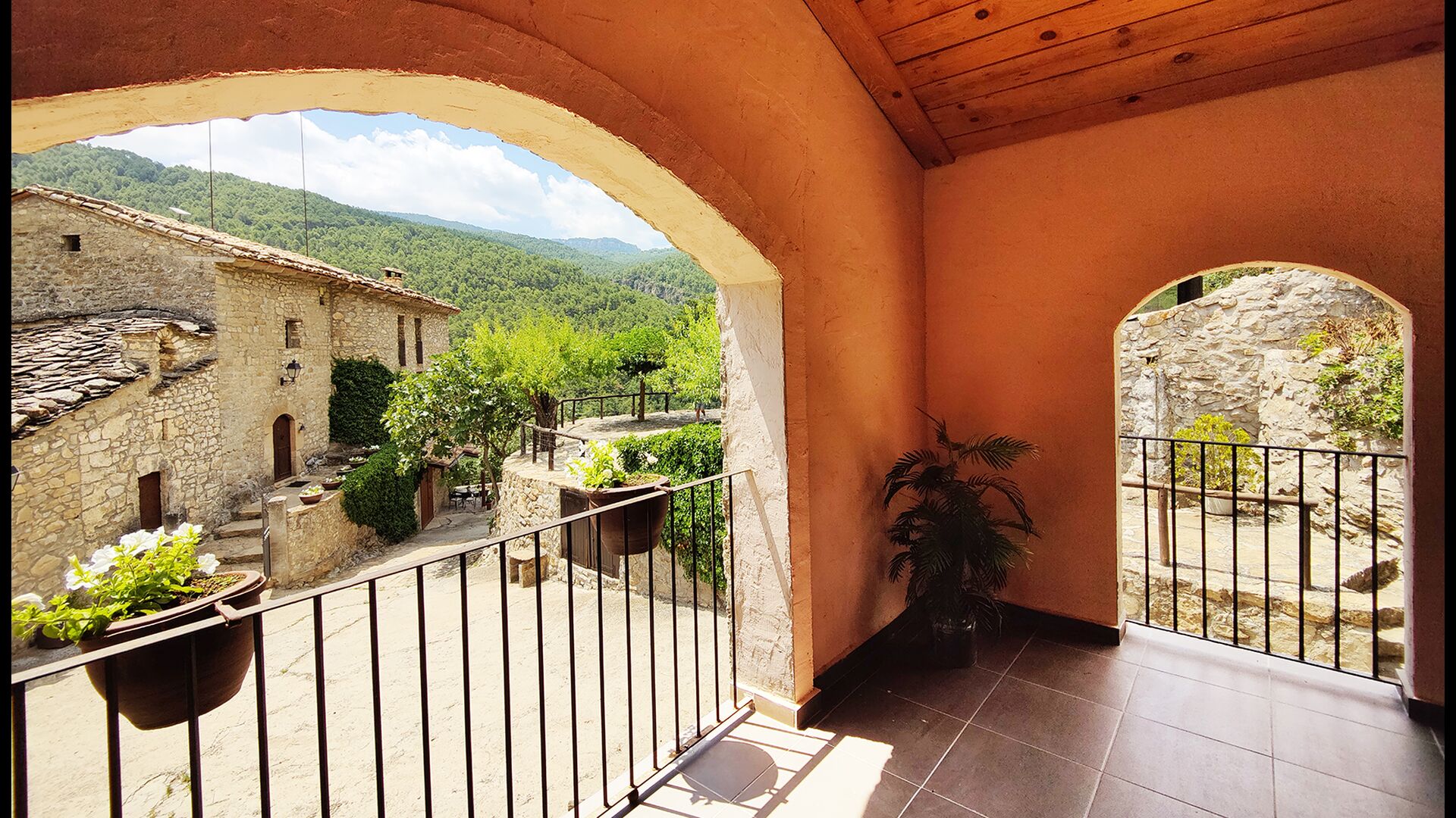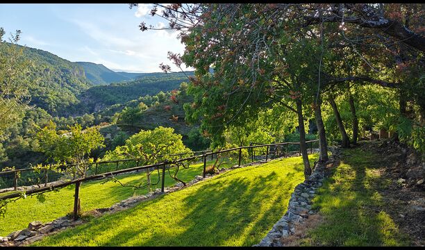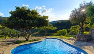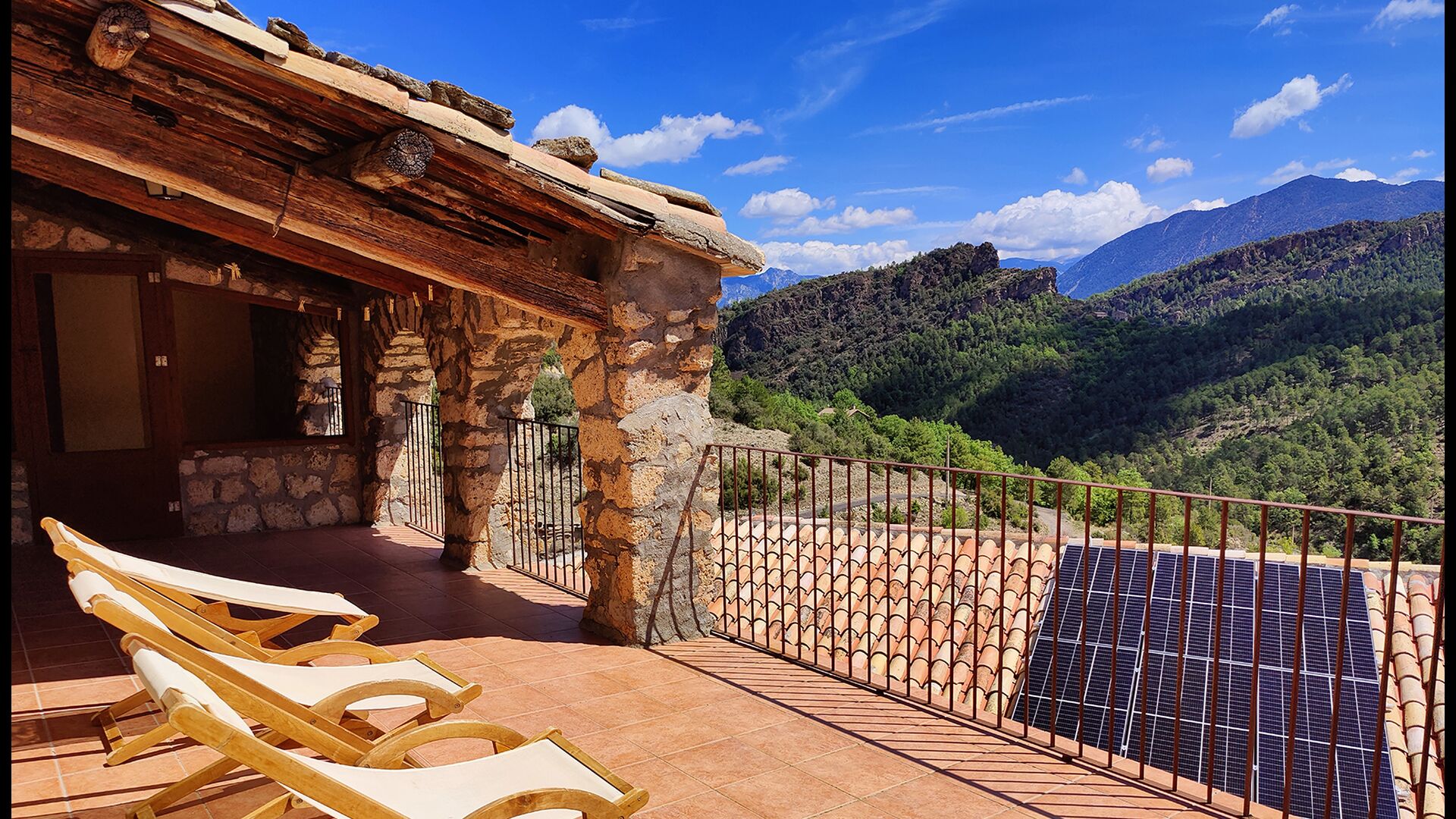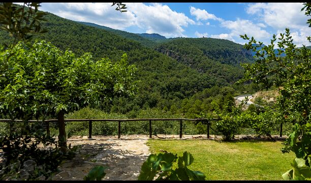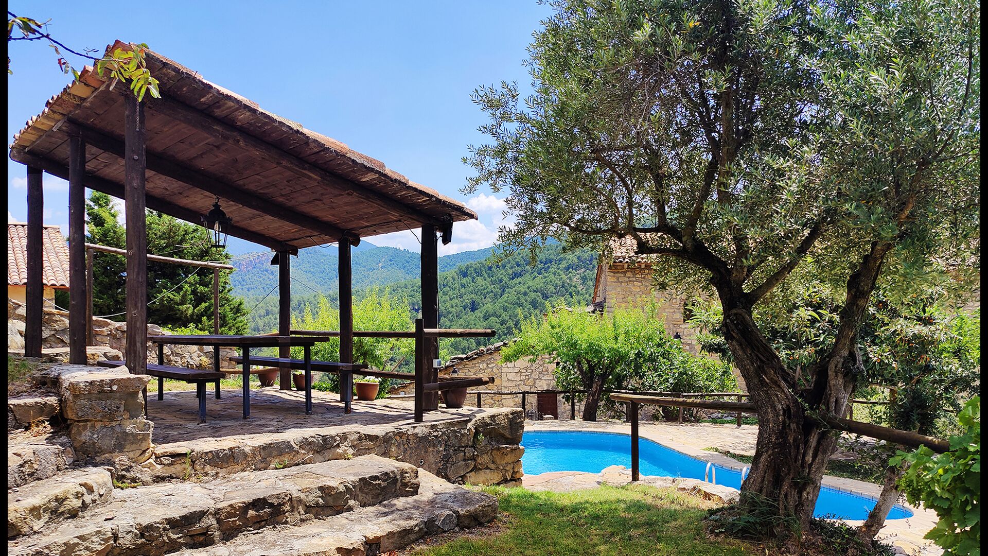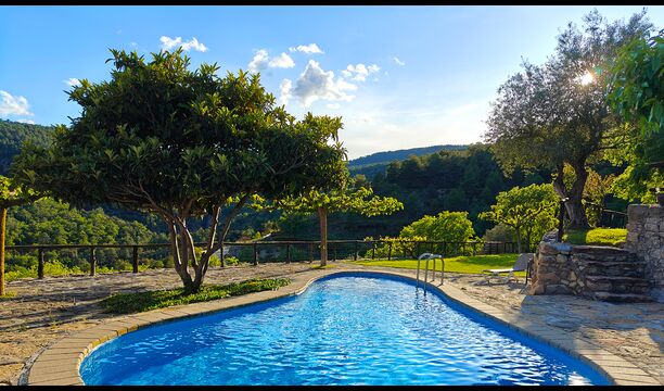 La terrasse couverte est l’un des endroits les plus charmants de la maison, parfaite pour le petit-déjeuner ou pour se détendre en écoutant le ruisseau voisin de Valldarques.