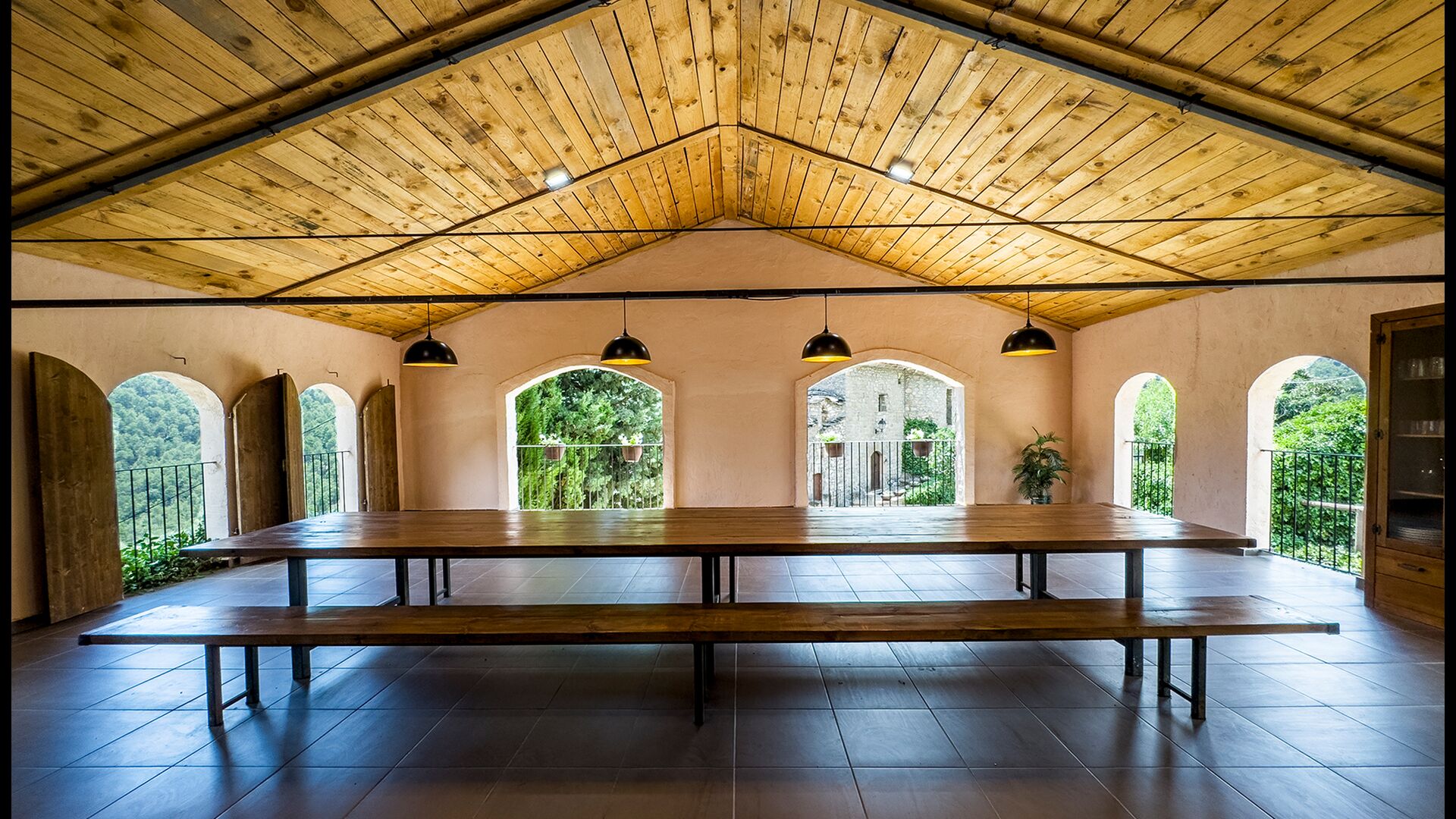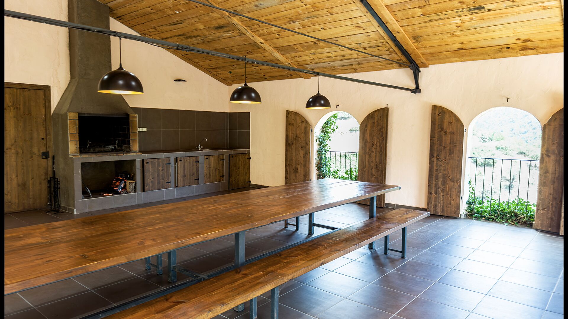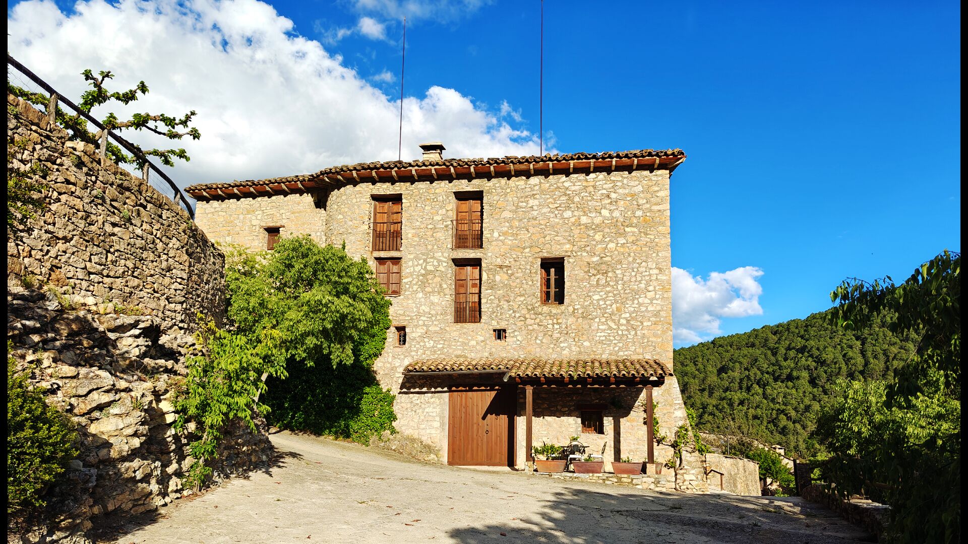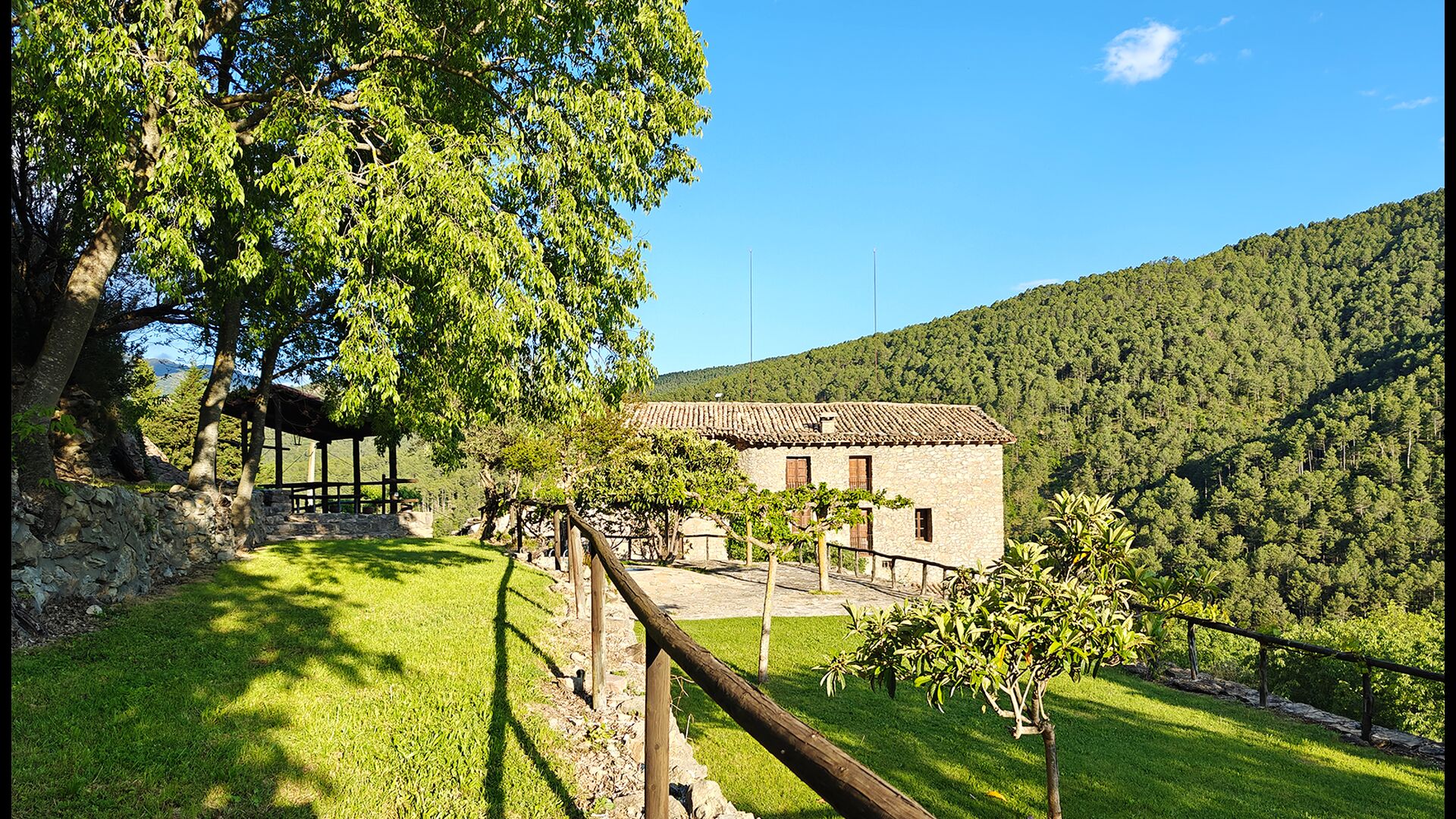 La terrasse couverte est l’un des endroits les plus charmants de la maison, parfaite pour le petit-déjeuner ou pour se détendre en écoutant le ruisseau voisin de Valldarques.