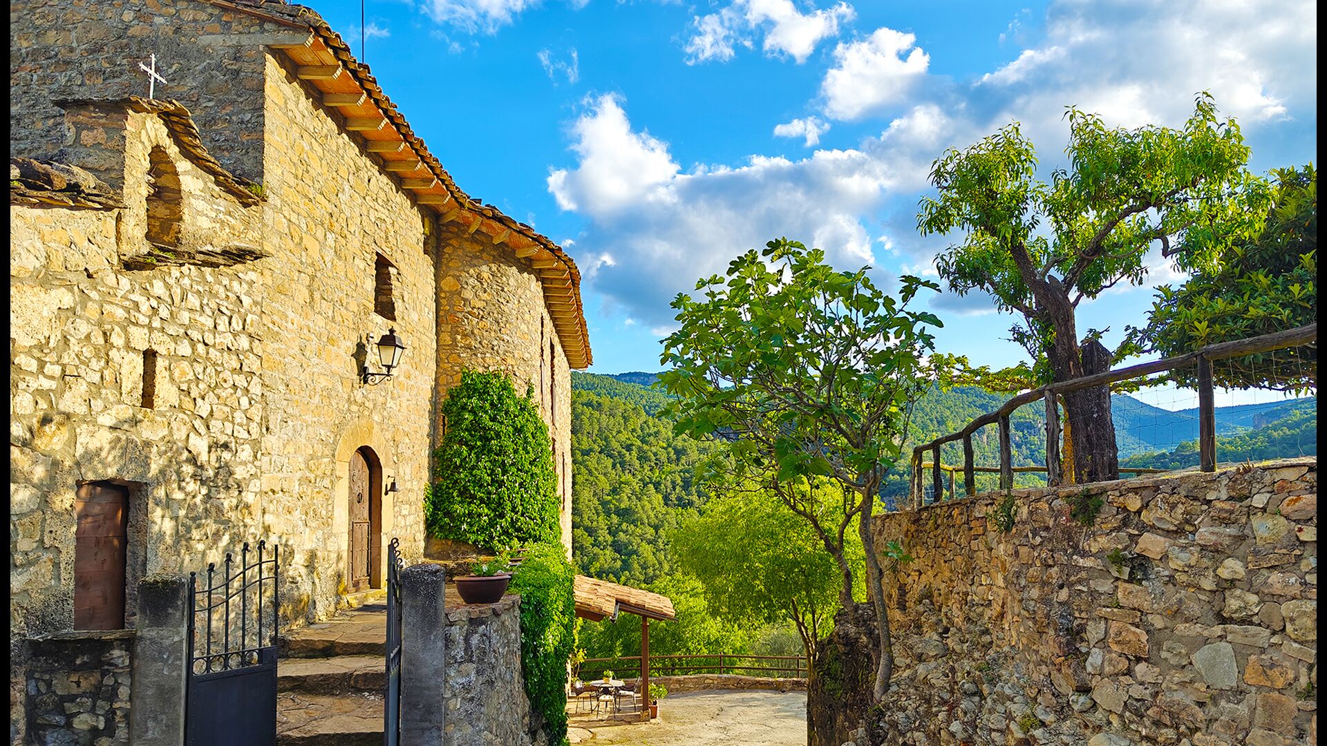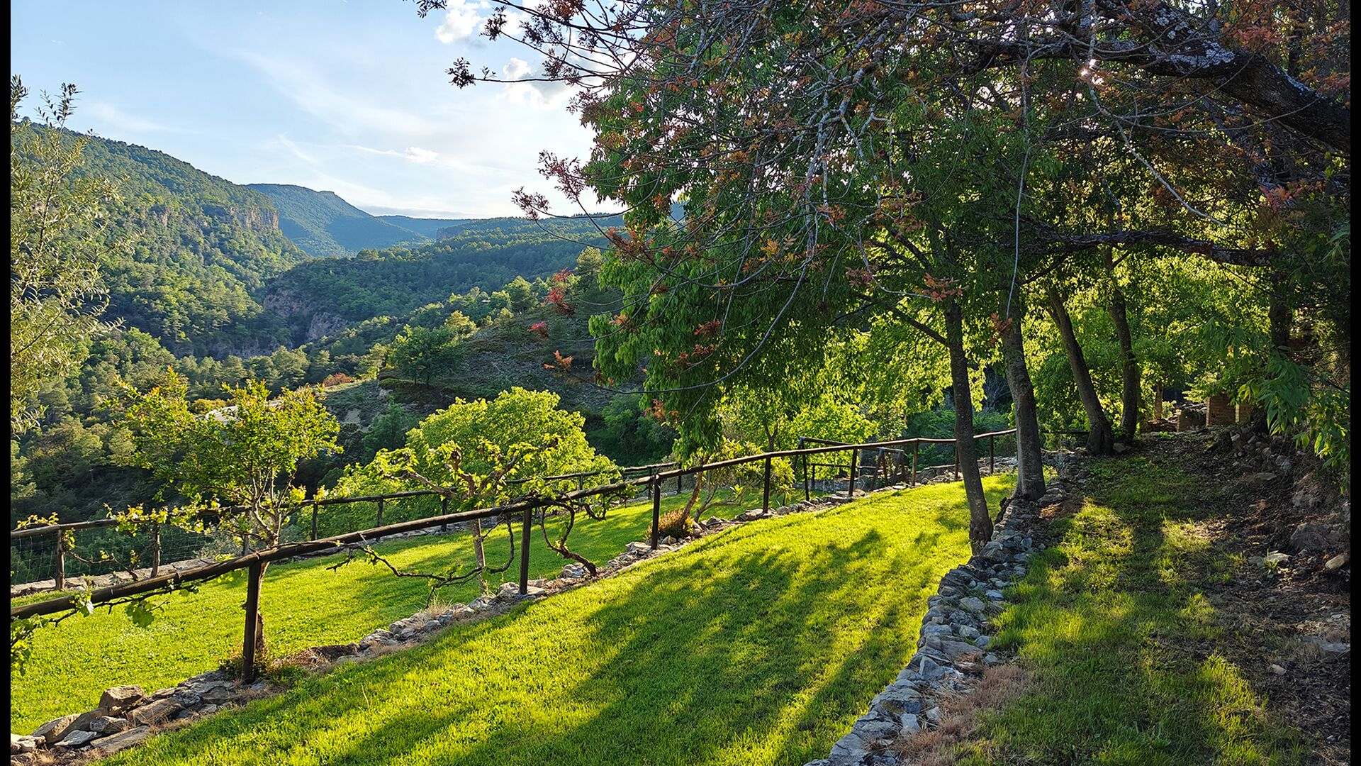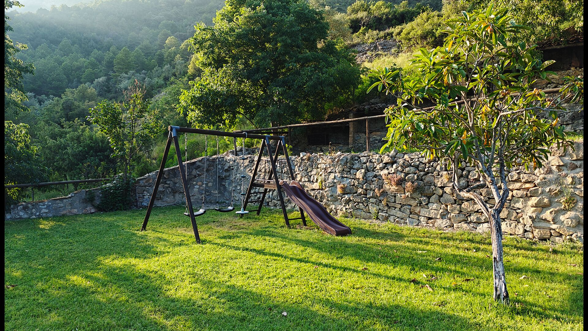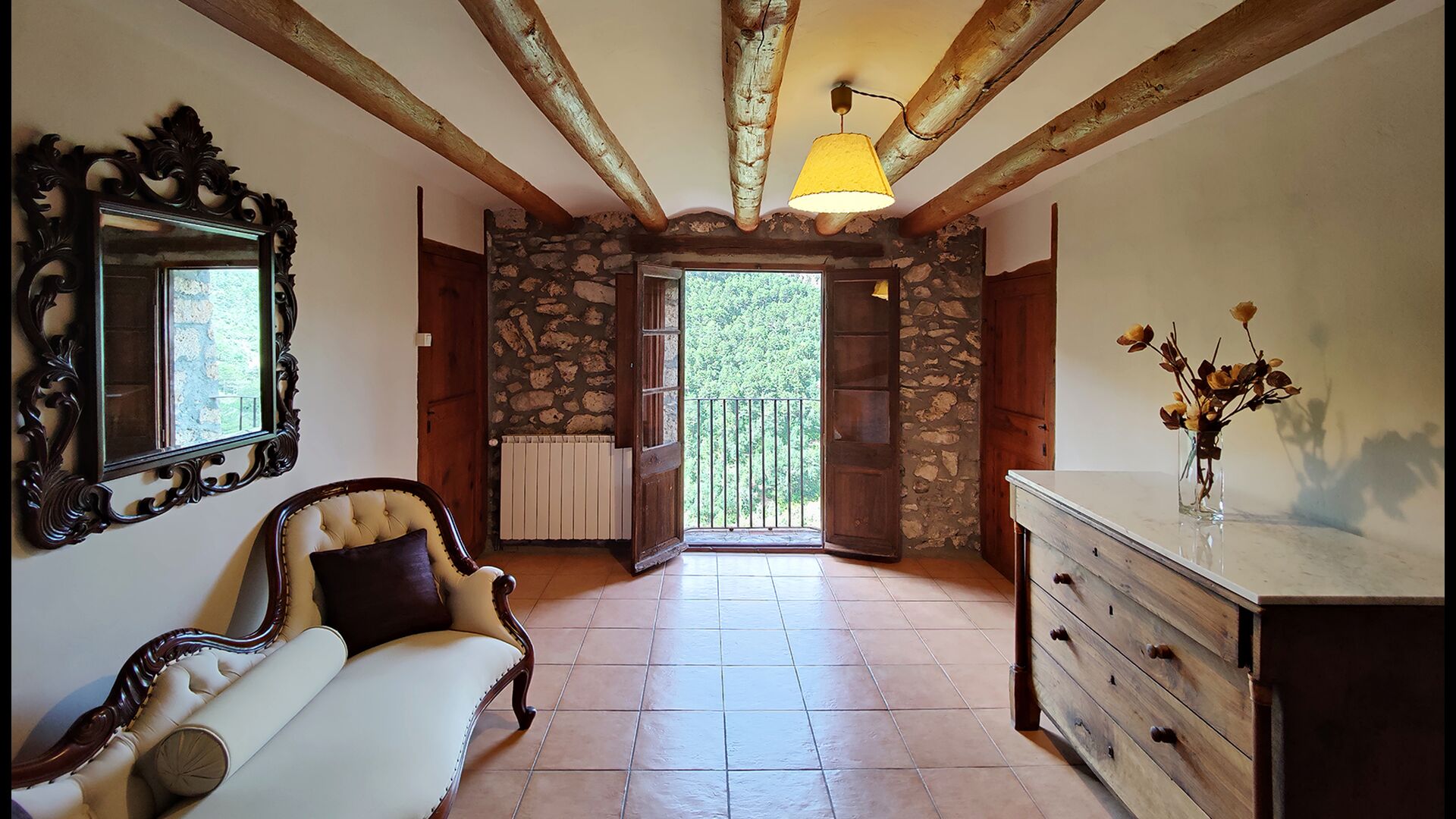 La terrasse couverte est l’un des endroits les plus charmants de la maison, parfaite pour le petit-déjeuner ou pour se détendre en écoutant le ruisseau voisin de Valldarques.