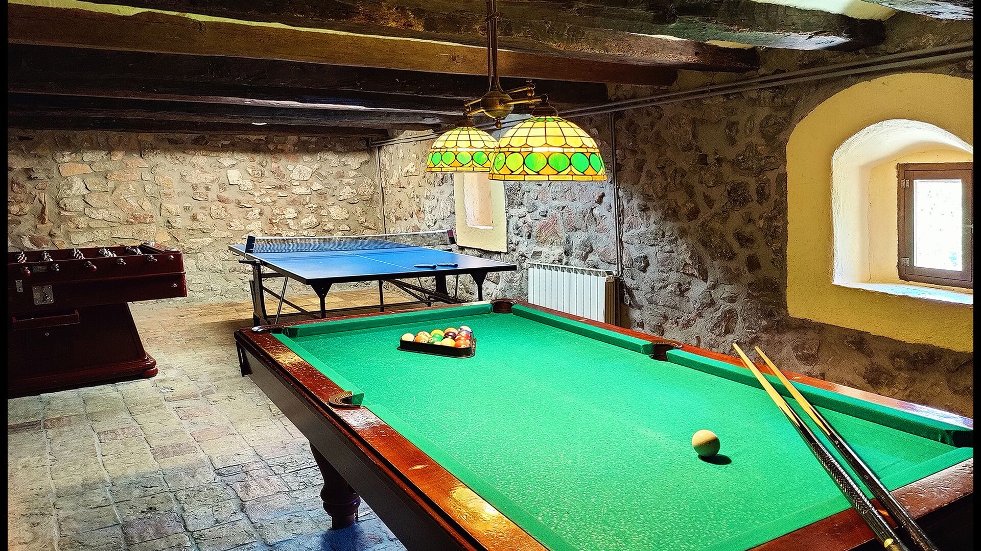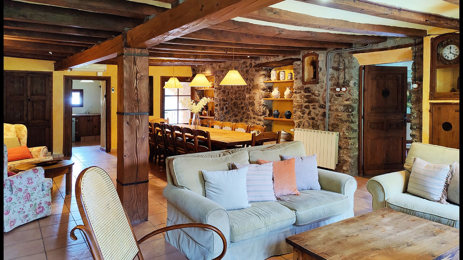 La maison dispose de 7 chambres doubles et 10 salles de bain, assurant confort et intimité pour les groupes voyageant ensemble. Plusieurs chambres possèdent leur propre salle de bain, tandis que d’autres se trouvent à proximité d’installations partagées.