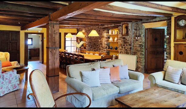 Can de Toriña offre de vastes espaces intérieurs et extérieurs entourés de forêts et de paysages montagneux, ce qui en fait une destination idéale pour les familles ou les groupes souhaitant profiter de la nature, de l’histoire et de la tranquillité des Pyrénées.