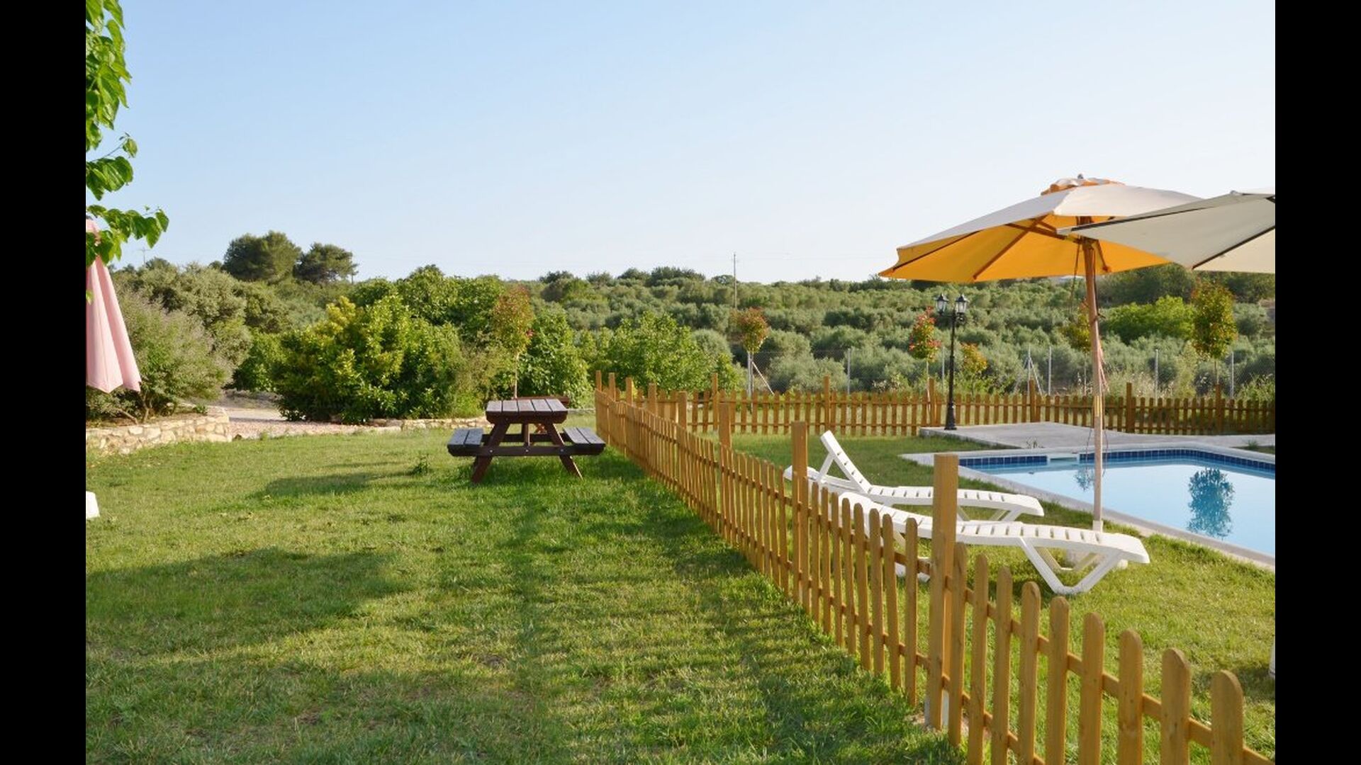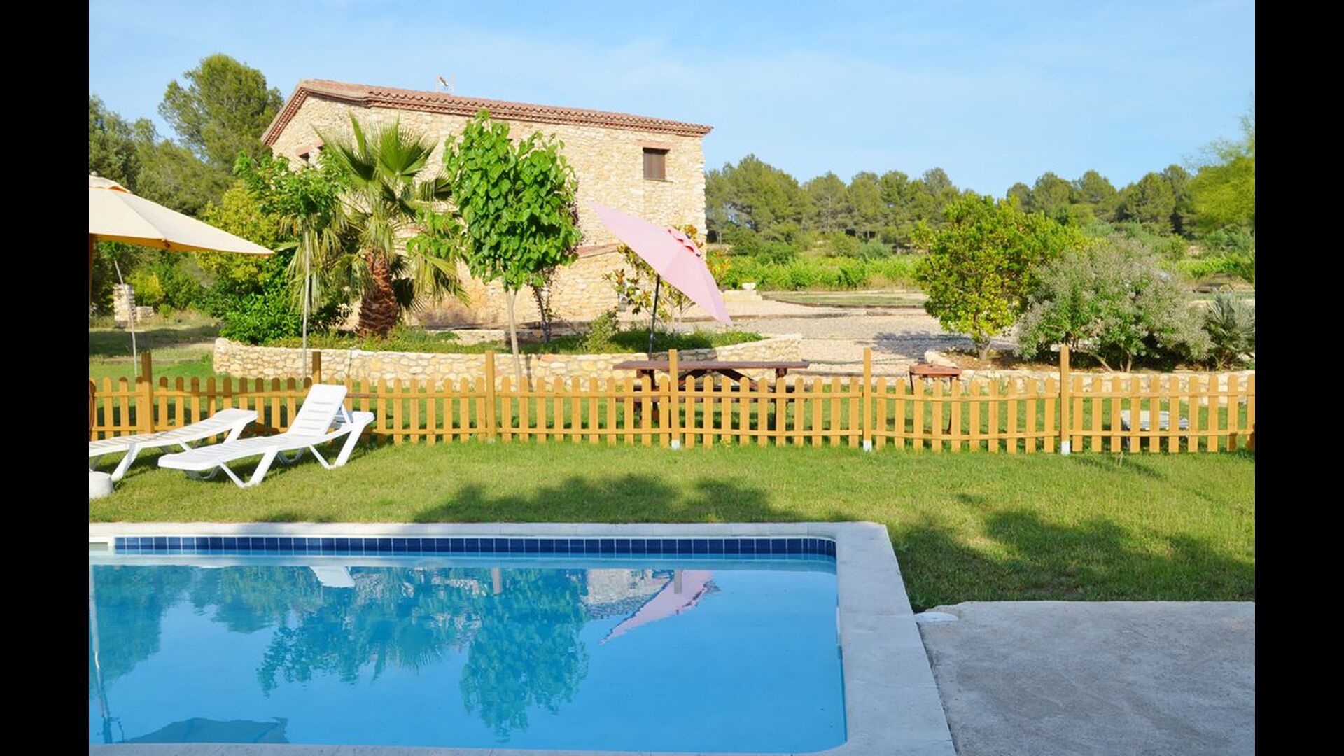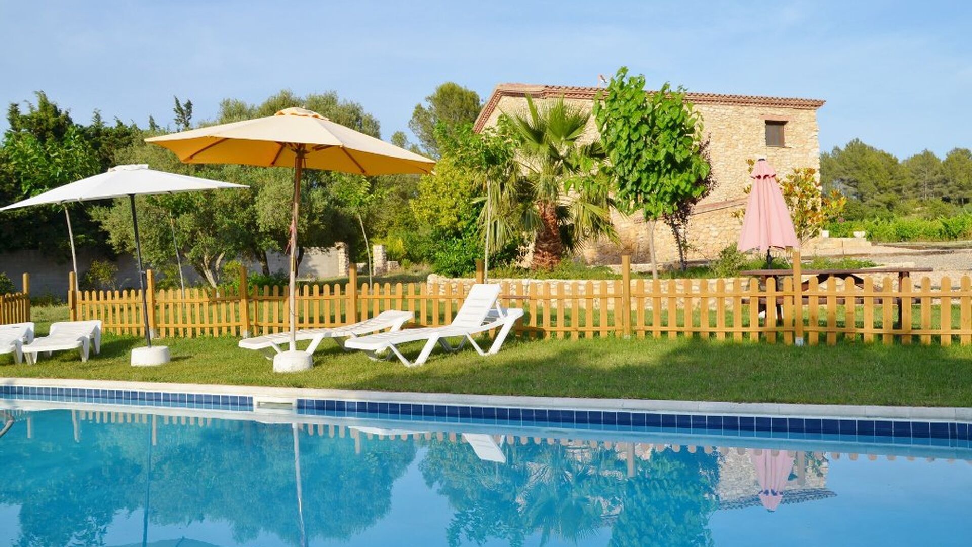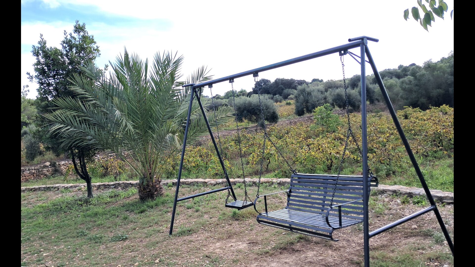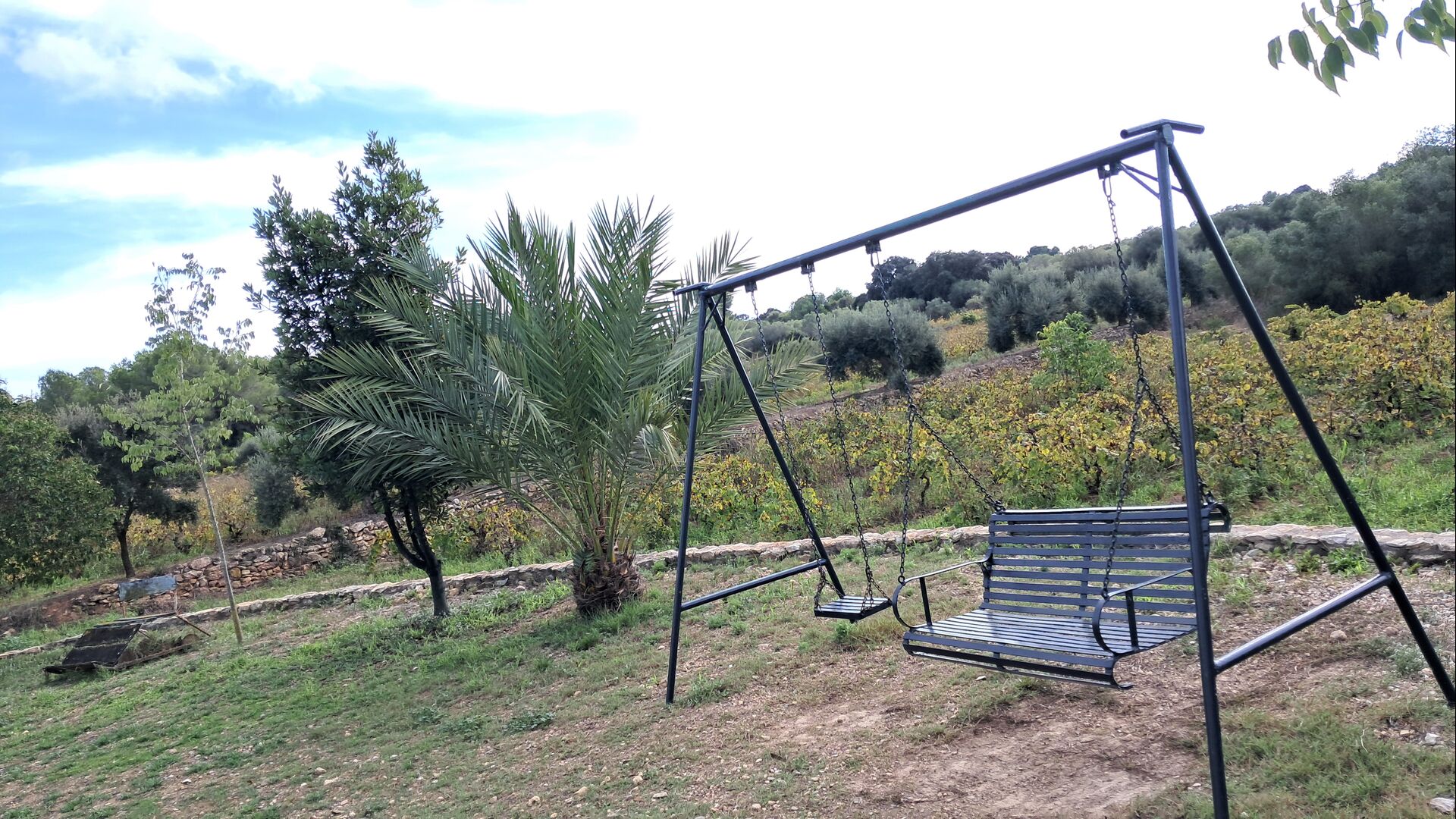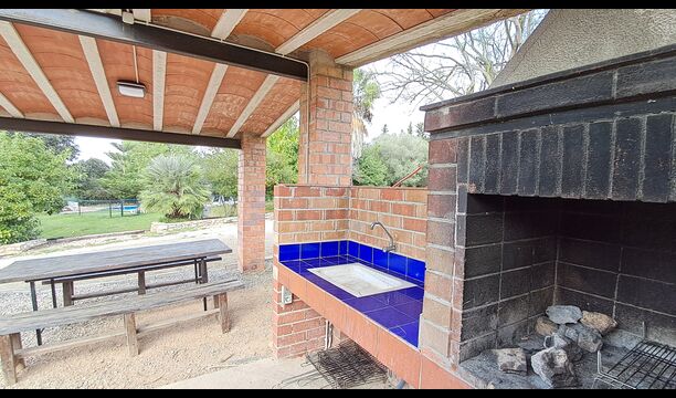 Le jardin a tout ce dont vous avez besoin pour des vacances reposantes, avec un espace barbecue couvert avec de l’eau et des sièges, la piscine et des balançoires pour les enfants et une belle vue sur les vignobles.