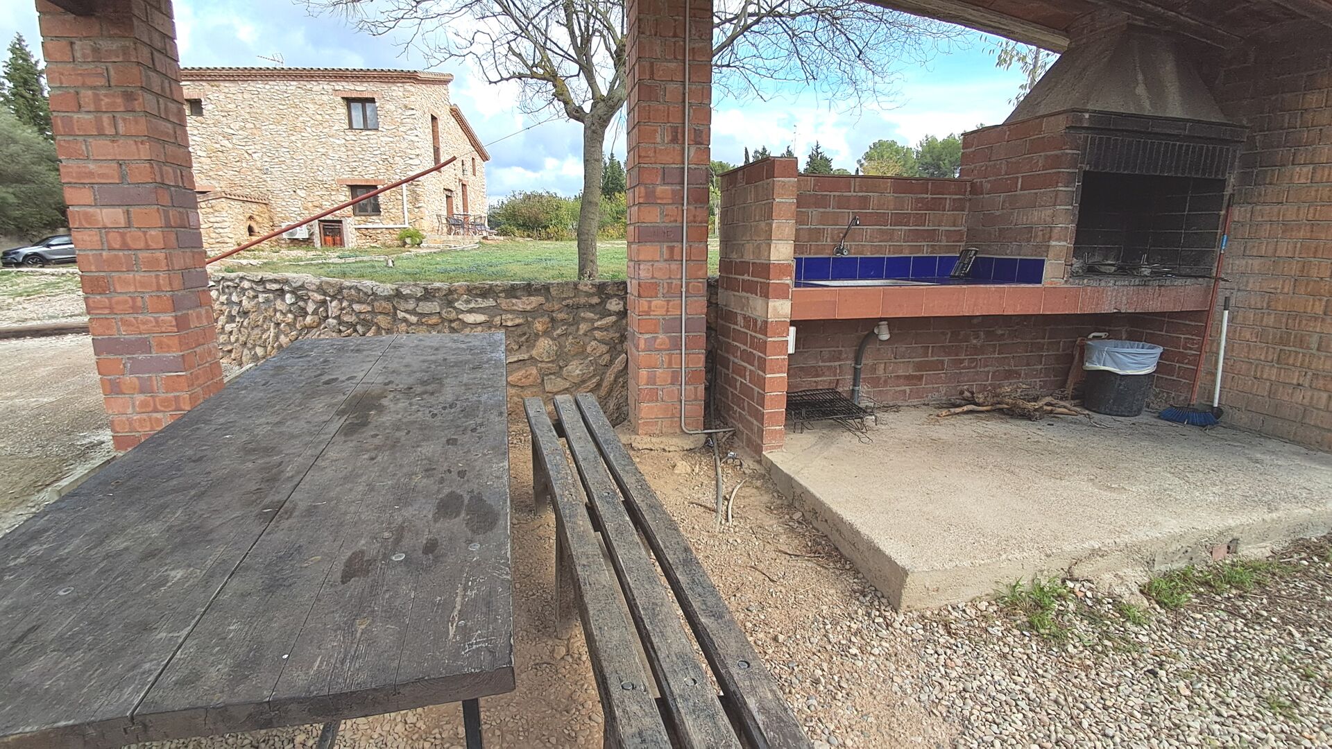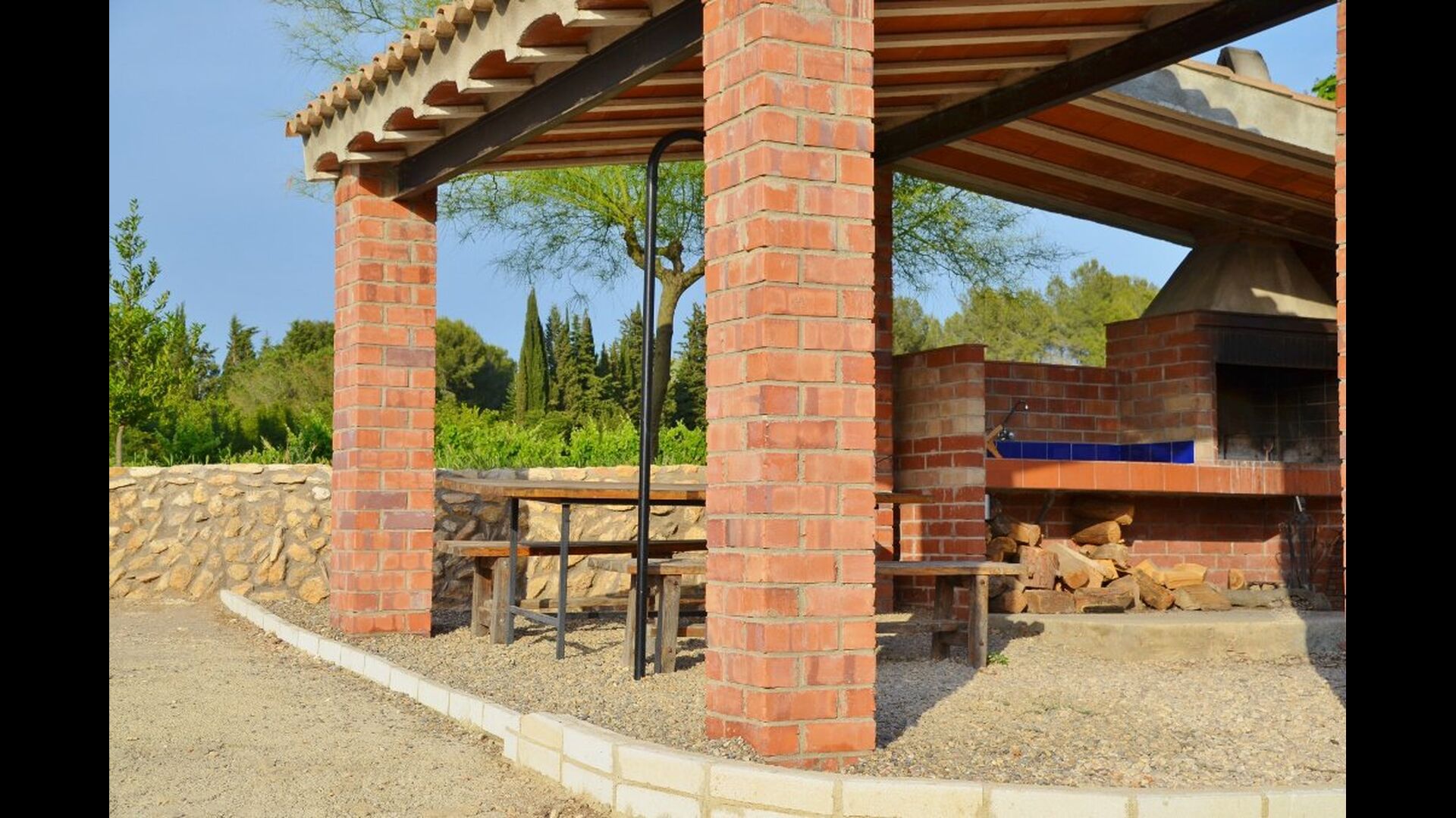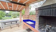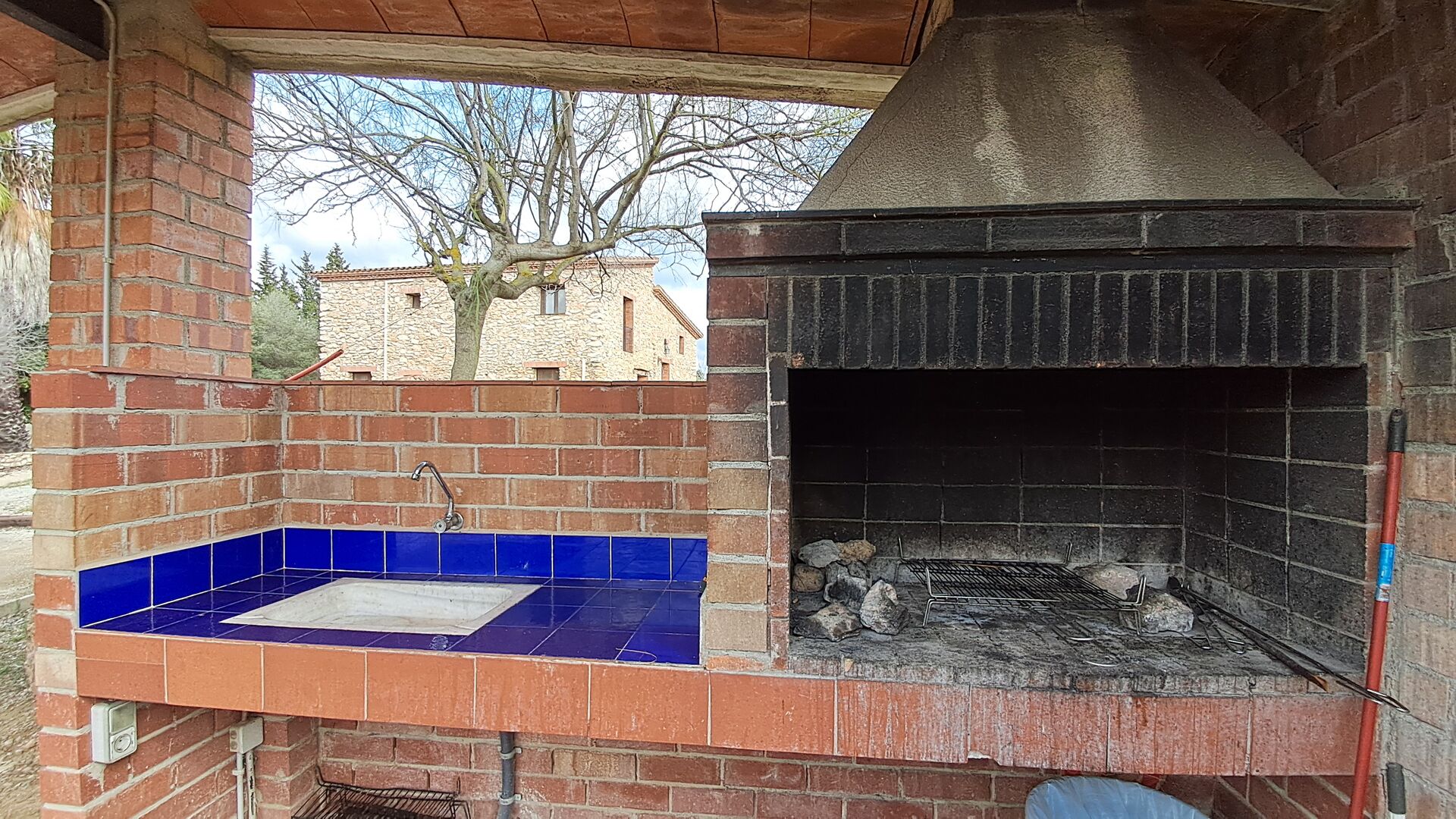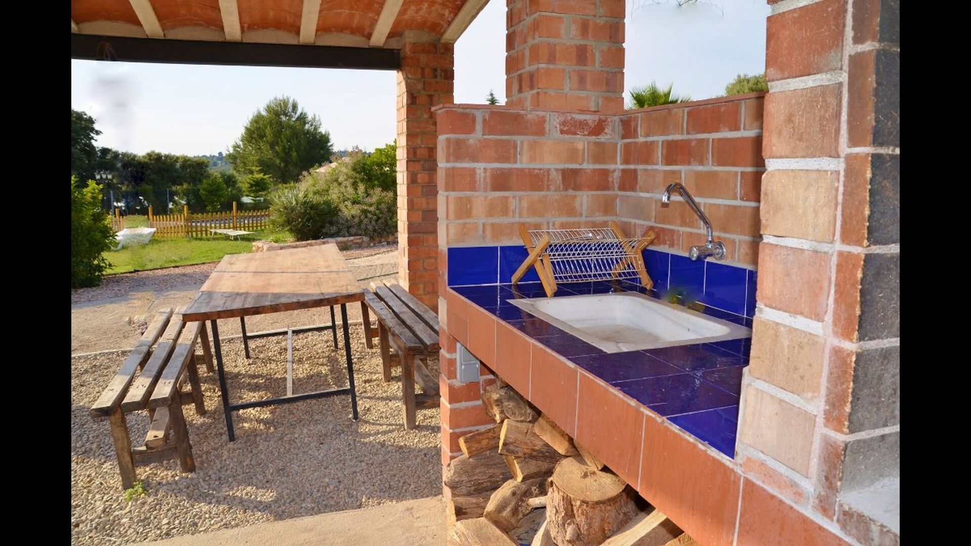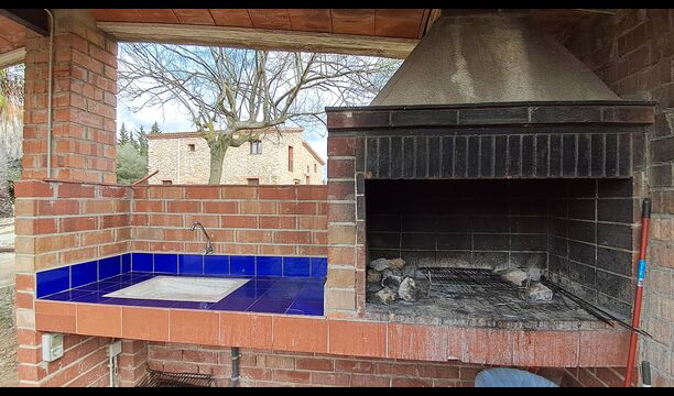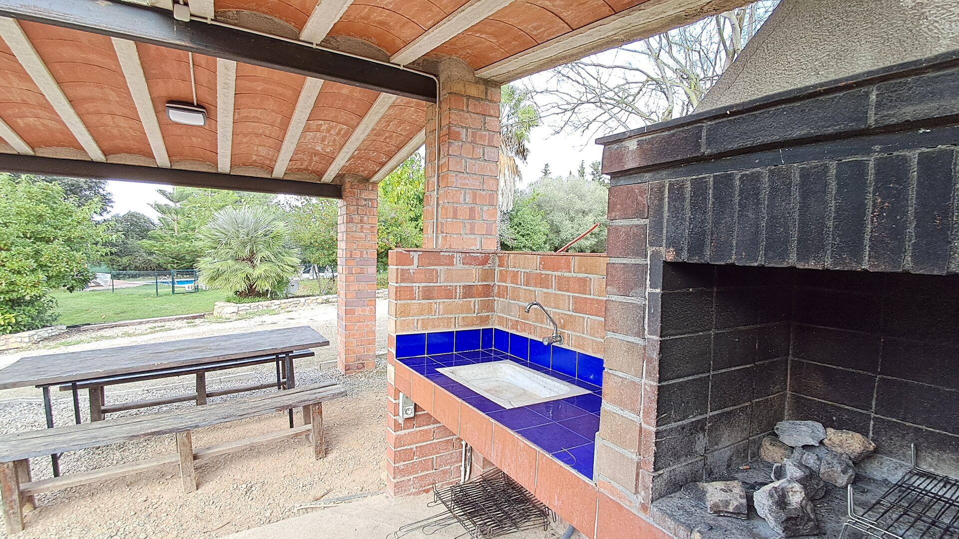 • Barbecue couvert avec des sièges et de l'eau