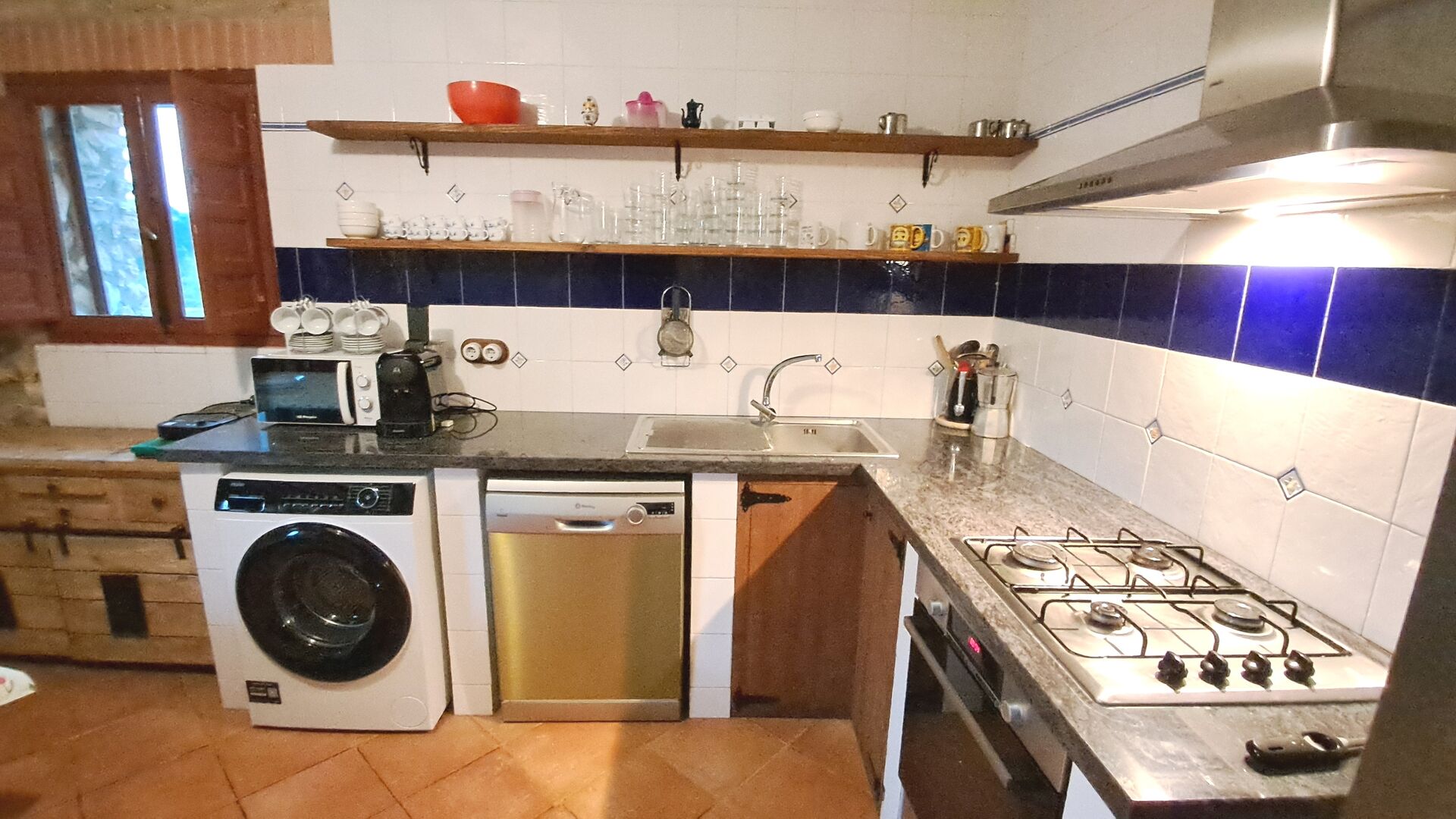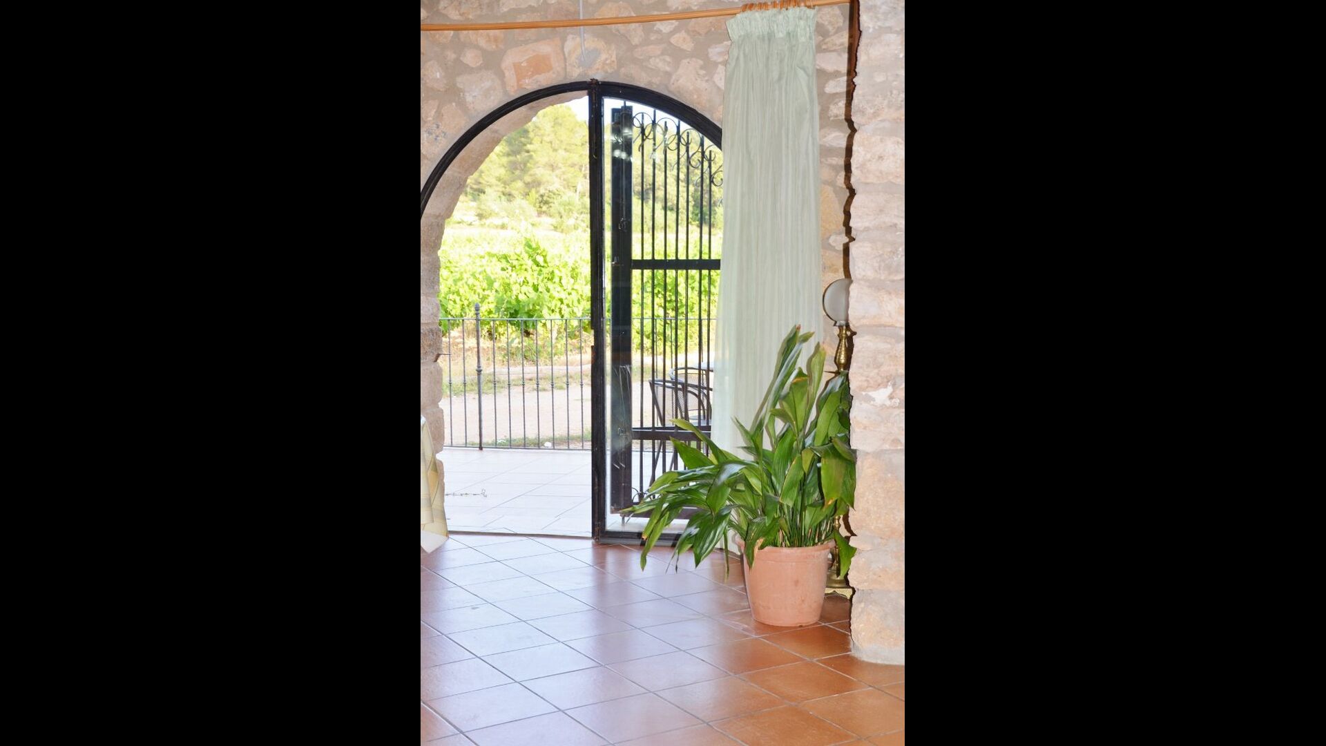 La maison, située avec des vignes juste de l'autre côté de la clôture, offre une belle vue et est équipée de façon simple mais fonctionnelle.