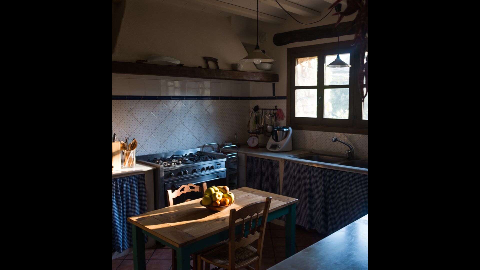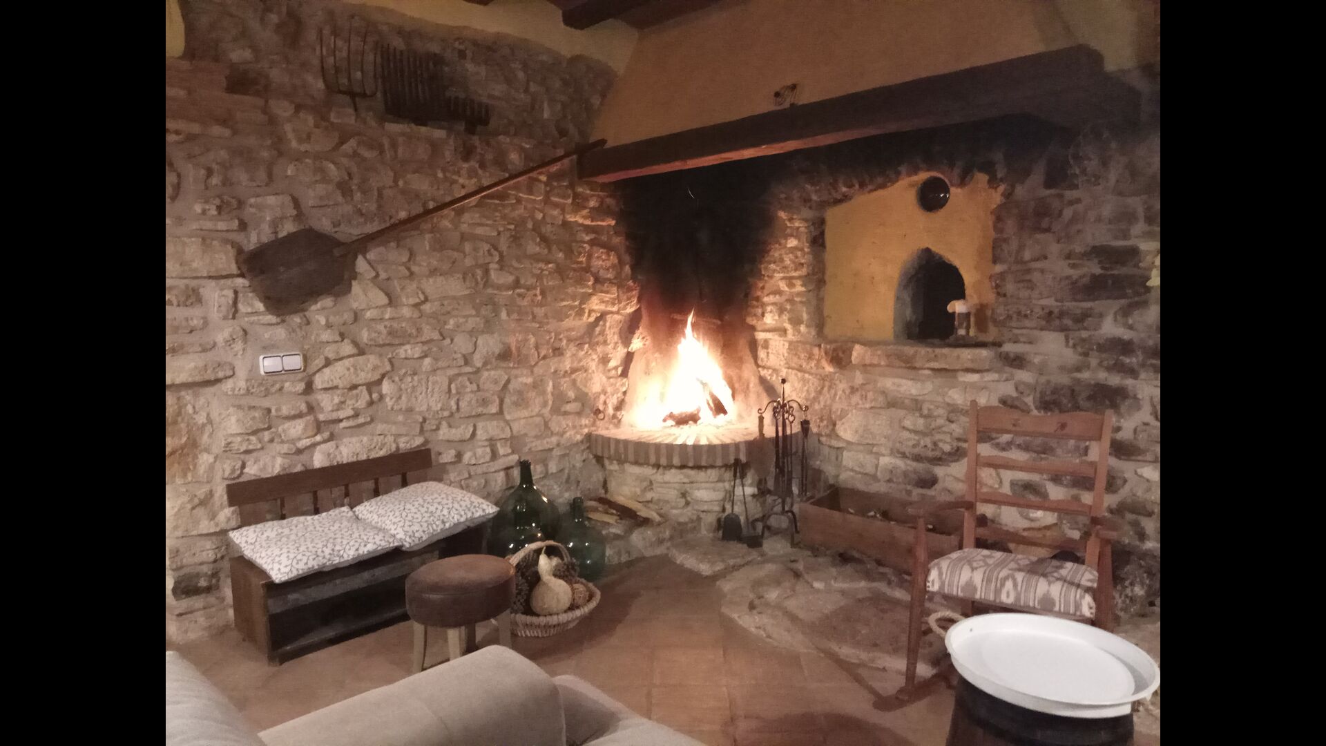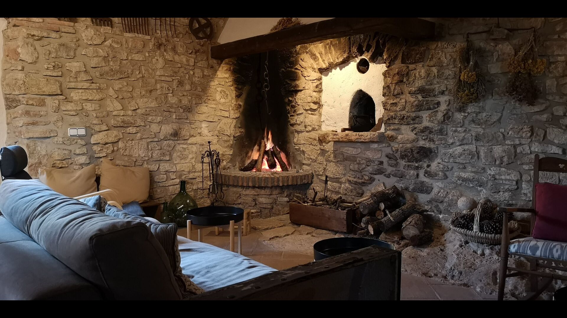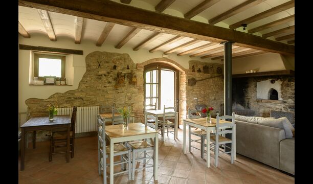 Au rez-de-chaussée, vous trouverez également unespace-salon/salon, doté d'une cheminée traditionnelle. Asseyez-vous dans le canapé confortable, près du feu, et détendez-vous au son doux des claquements et des éclats du feu, alors que le soir cède la place à la nuit. Les murs en pierre confortables et classiques ne font qu'ajouter à la sensation de vivre dans une tranche de sérénité catalane sur mesure, et c'est un endroit idéal pour se détendre< /strong> seul ou avec des amis/famille ; détendez-vous, dînez ou profitez de conversations animées jusque tard dans la nuit. Vous trouverez également la cuisine au rez-de-chaussée.