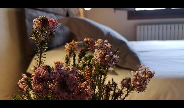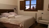 -          Farena : Une chambre avec 1 lit double, deux petites tables de nuit avec lampes et une salle de bain attenante, offrant une vue sur le jardin et les montagnes, possibilité d'un lit supplémentaire (35 EUR), et accepte les animaux domestiques. Les dimensions du lit sont 150x190cm.