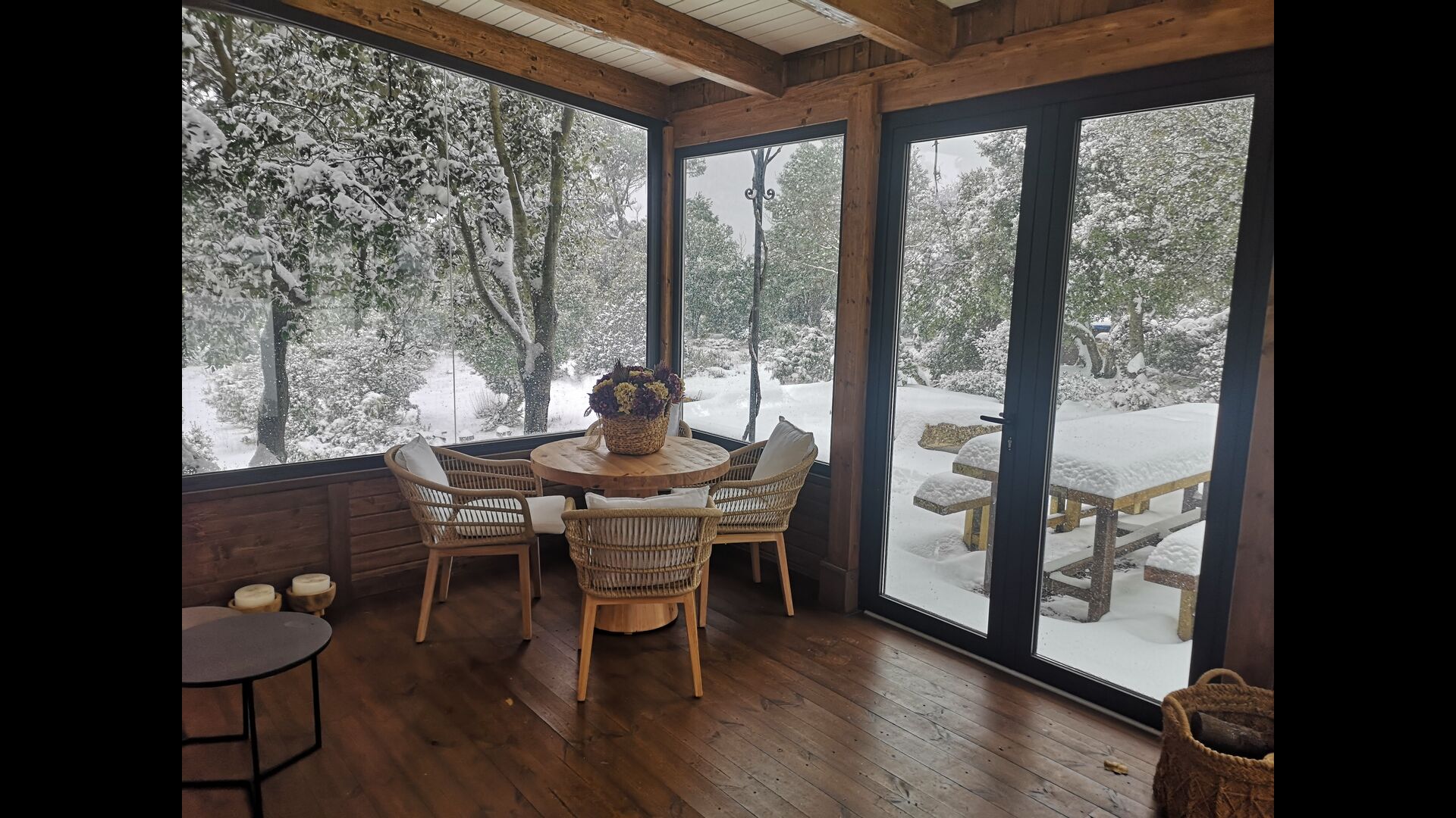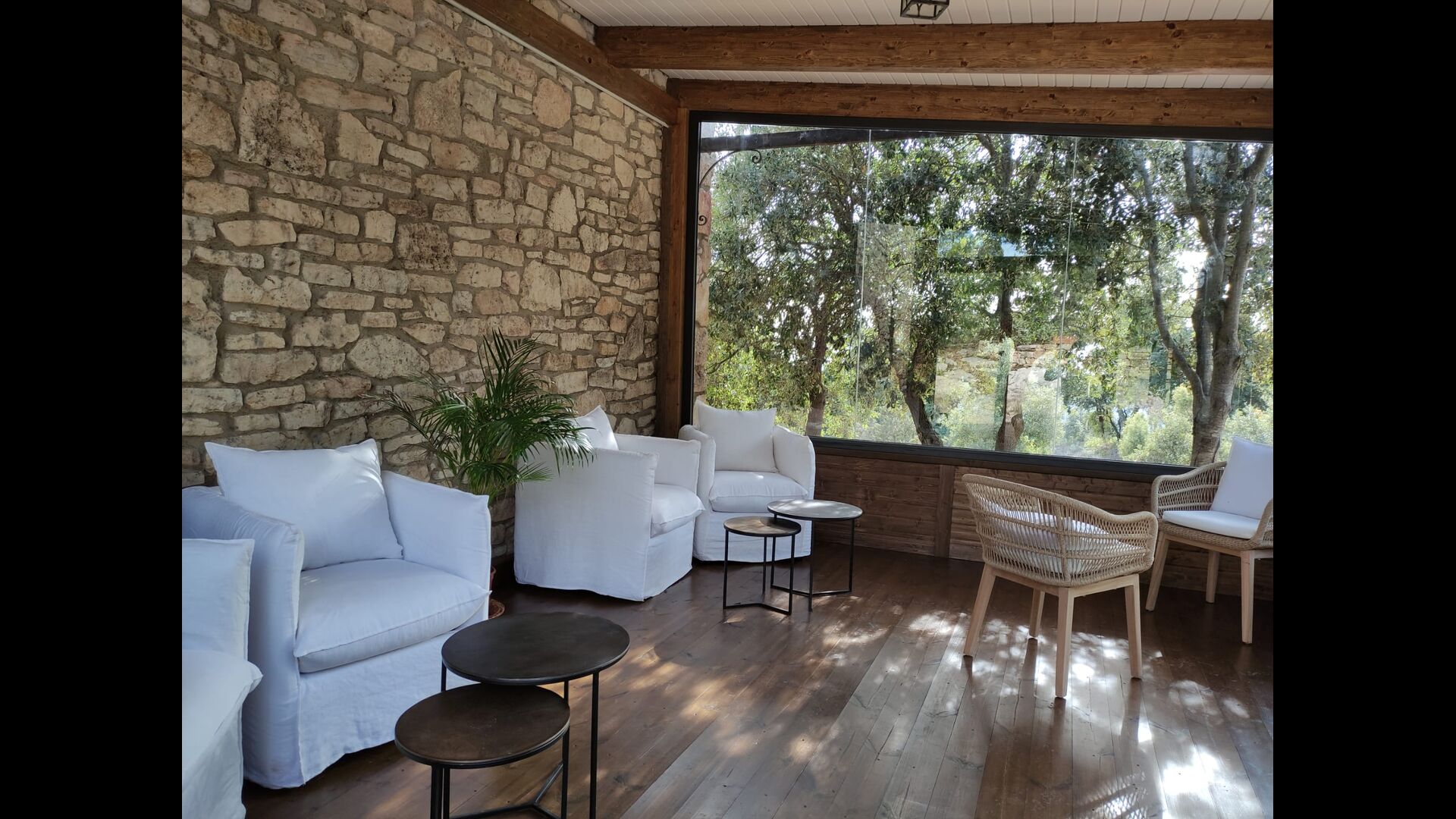 • Terrasse entièrement couverte, avec chaises et petites tables