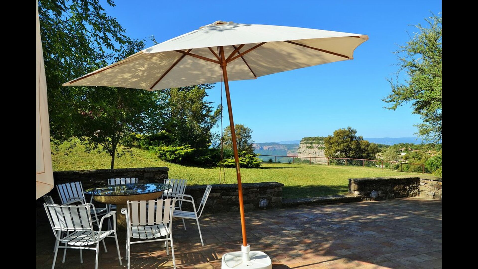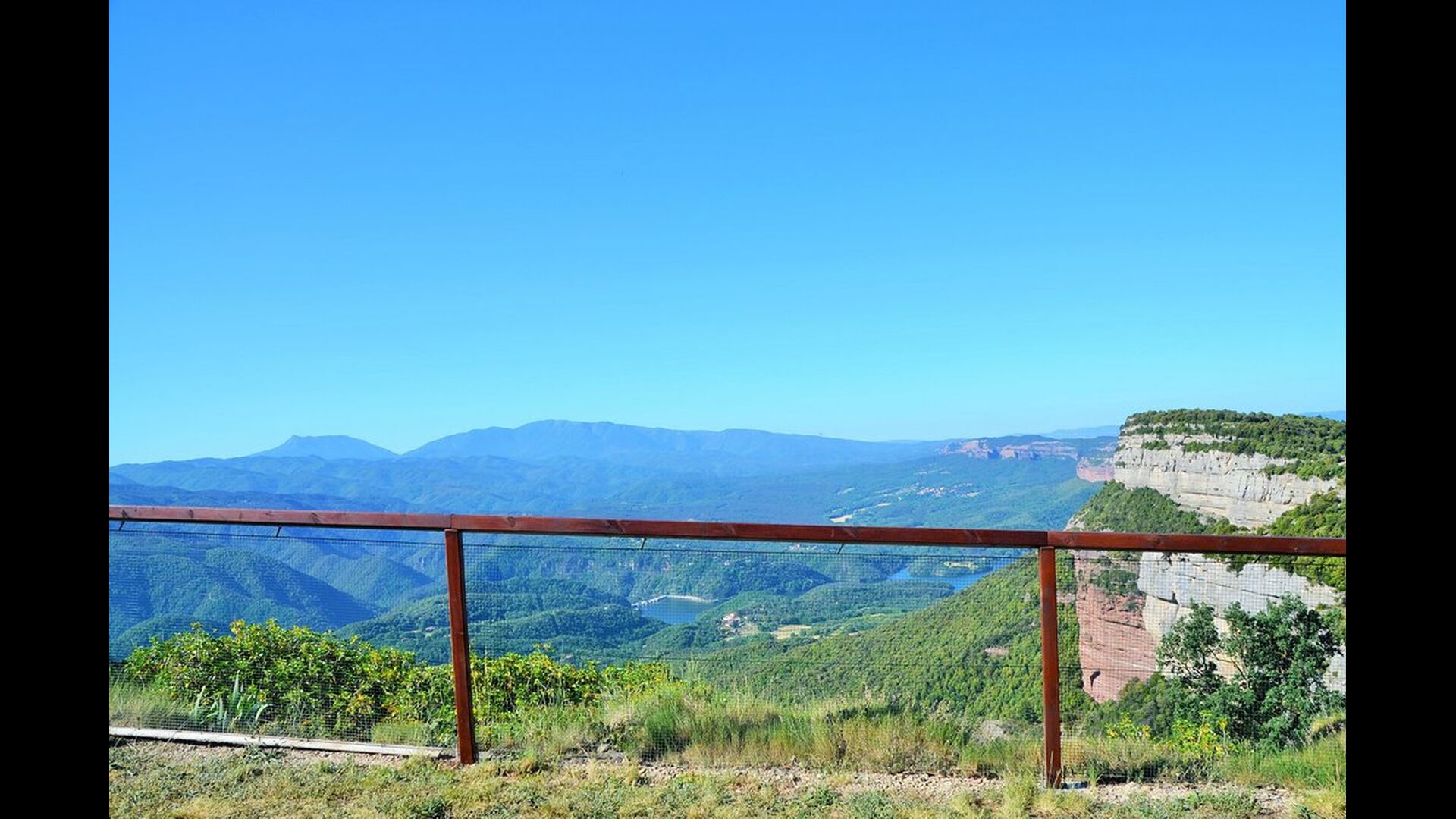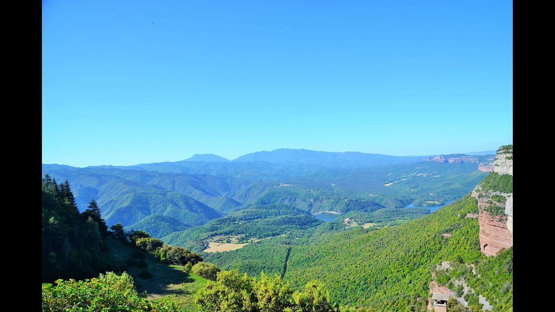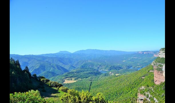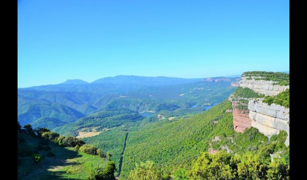 Au bout de la très grande pelouse, vous avez une vue panoramique incroyable sur la vallée avec le lac de Sau en bas et à droite, le village au sommet de la colline comme la maison. Tout cela est entouré d'une belle et colorée formation de montagnes et, si vous êtes chanceux, vous pourrez voir un aigle en flèche.