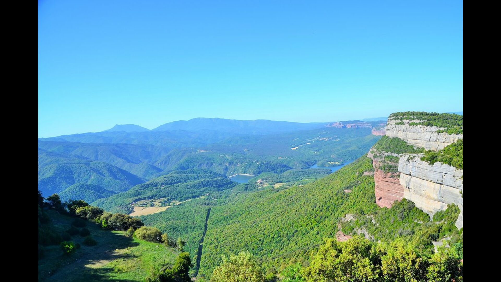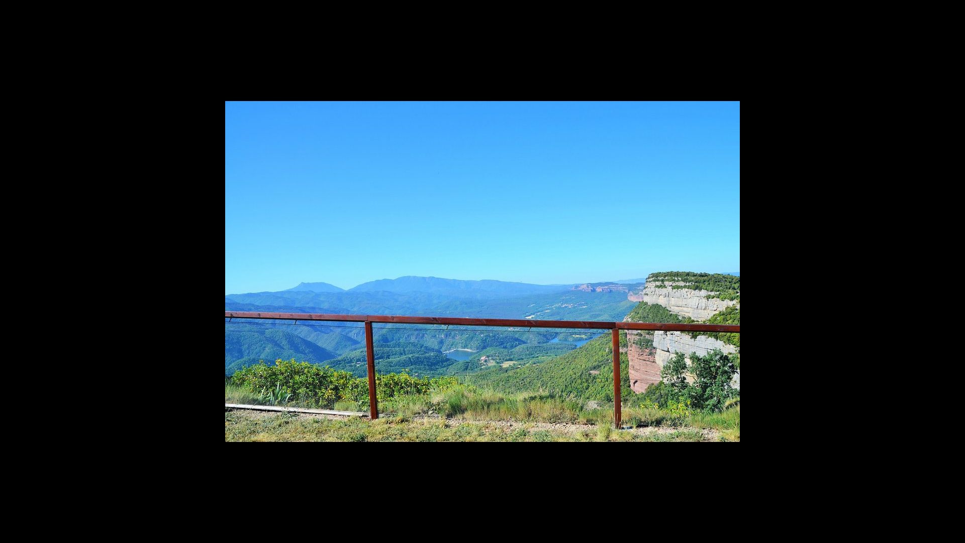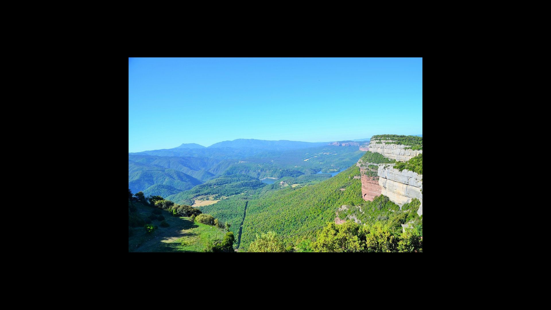 Au bout de la très grande pelouse, vous avez une vue panoramique incroyable sur la vallée avec le lac de Sau en bas et à droite, le village au sommet de la colline comme la maison. Tout cela est entouré d'une belle et colorée formation de montagnes et, si vous êtes chanceux, vous pourrez voir un aigle en flèche.