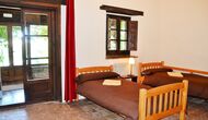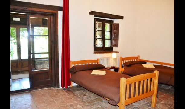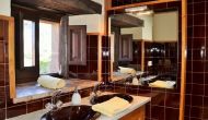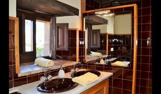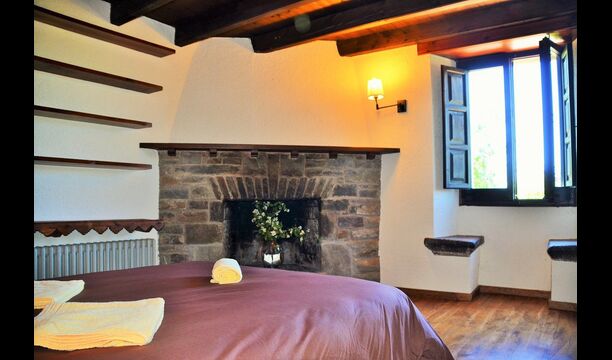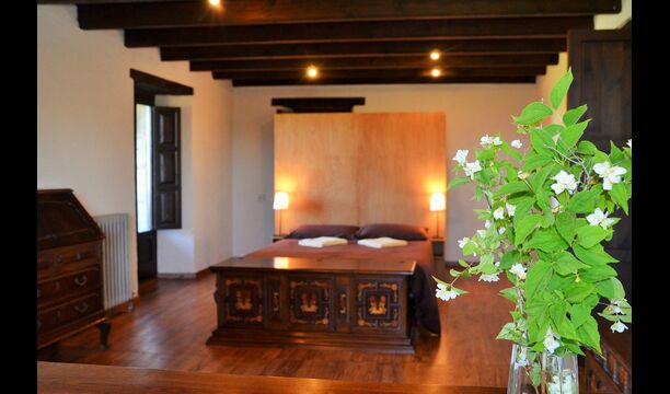 Au premier étage, à gauche, il y a une très belle chambre double, avec de très beaux détails et une vue sur le jardin. En outre, une petite toilette a été installée. Ensuite, il y a la plus grande chambre avec un lit double et deux balcons avec vue sur la piscine et les montagnes. Le bureau où de nombreux livres ont été formés est toujours là pour rappeler l’histoire de la maison. Si nécessaire, des lits supplémentaires (contre supplément) conviendront facilement si votre groupe est plus grand que 11 personnes. Cette chambre a une salle de bain attenante. Enfin, il y a la troisième chambre double spacieuse avec salle de bain attenante.
