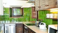 L'étage inférieur a l'aire commune en deux parties. Une partie pour manger avec une très grande table à manger ronde et confortable et ensuite le salon avec différentes belles chaises et une télévision. En connexion, la cuisine fonctionnelle et entièrement équipée. En outre, il y a deux chambres et deux salles de bains. Une chambre a 3 lits simples, et l'autre est une chambre double, qui a une très belle petite véranda en connexion et un accès direct à l'extérieur.