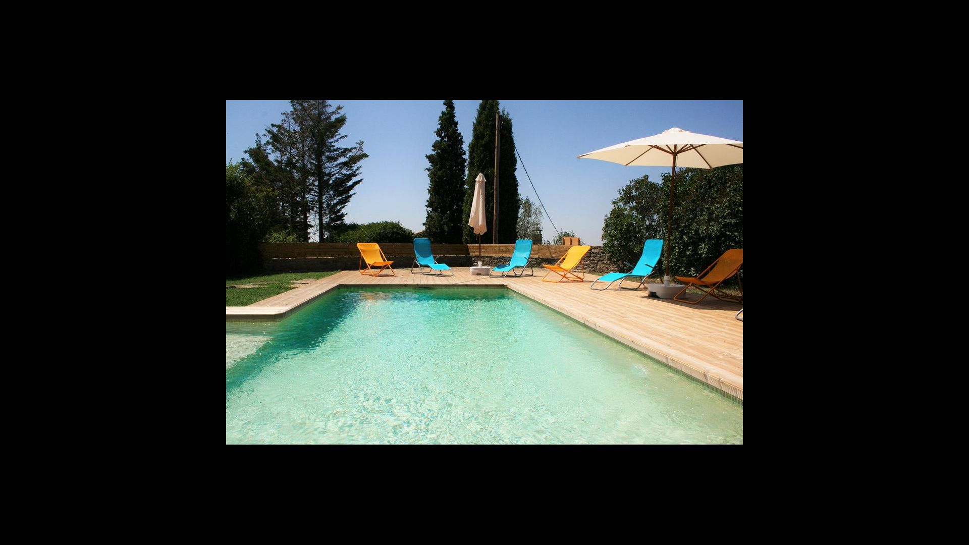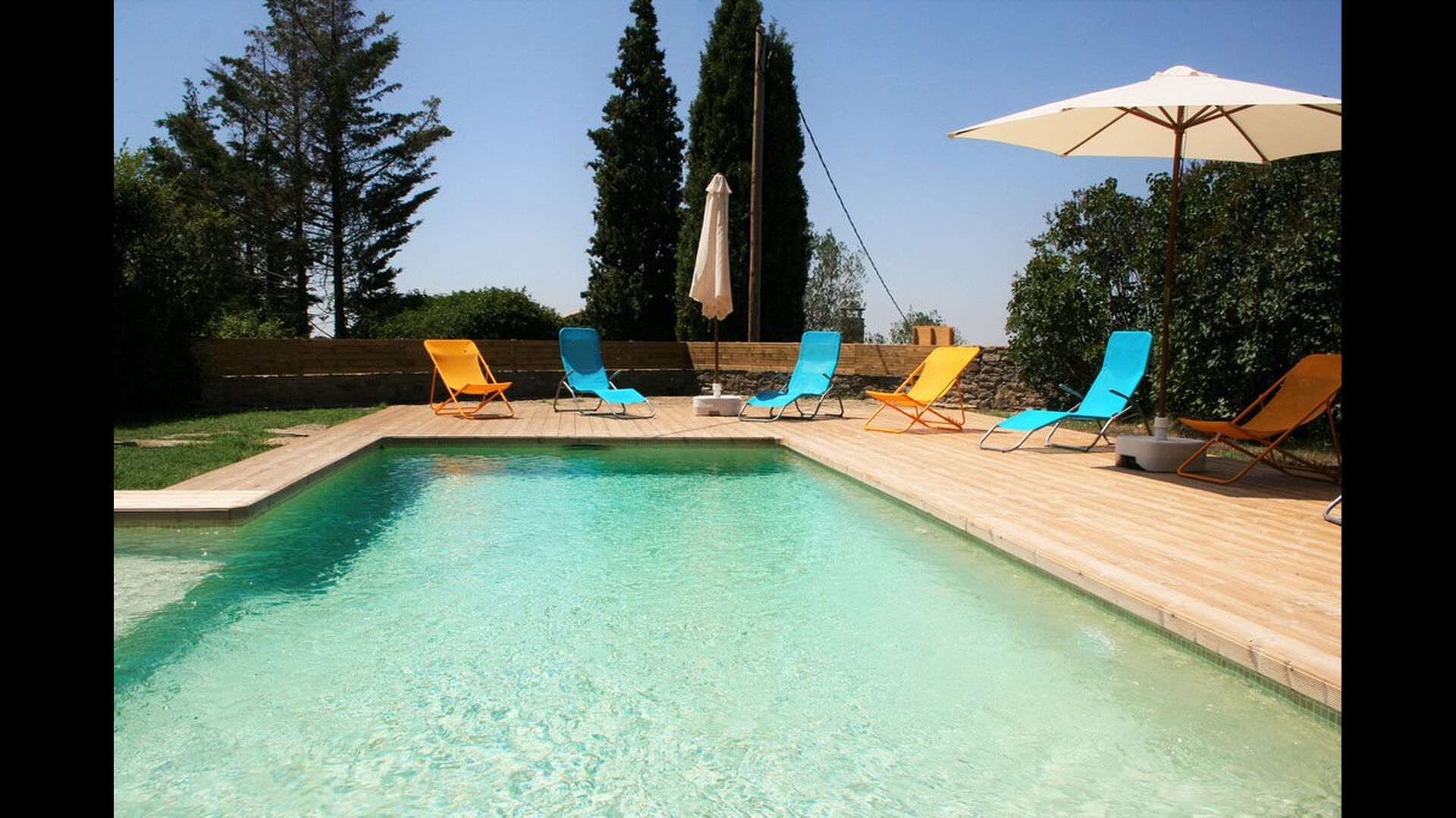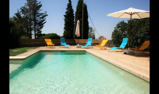 À l’extérieur, la piscine est le point de départ idéal de la chaleur estivale catalane. Il est conçu pour accueillir les petits enfants, car un angle a été fixé avec marches et manque d’eau pour les petits enfants. La partie principale mesure 8 x 4 mètres et est parfaite pour une petite baignade. La terrasse en bois avec chaises longues est parfaite pour bronzer. Vous pouvez aussi choisir un coin ombragé s'il fait trop chaud.