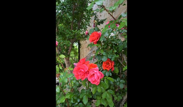 Le jardin est confortable avec des fleurs, des arbres et des sièges où vous pouvez trouver de l'ombre à midi et peut-être vous détendre avec un livre.