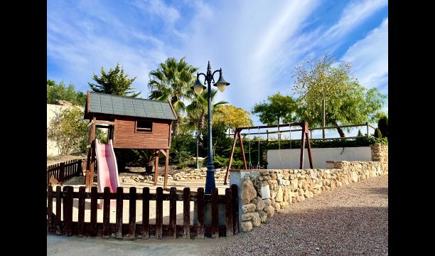 Dans la propriété de la maison de vacances, il y a une aire de jeux moderne et excitante contenant une cabane dans les arbres avec un toboggan et deux balançoires pour les petits enfants